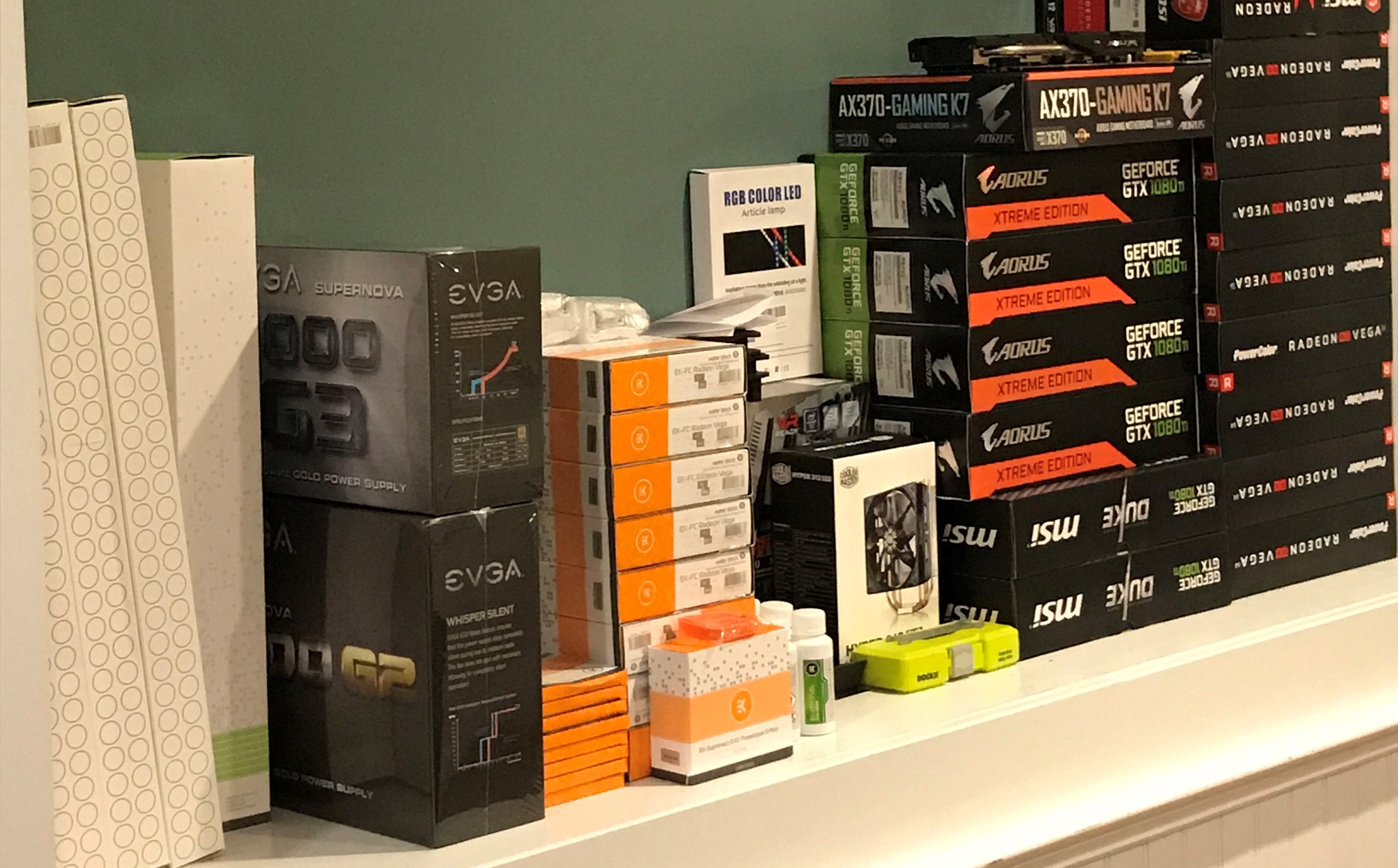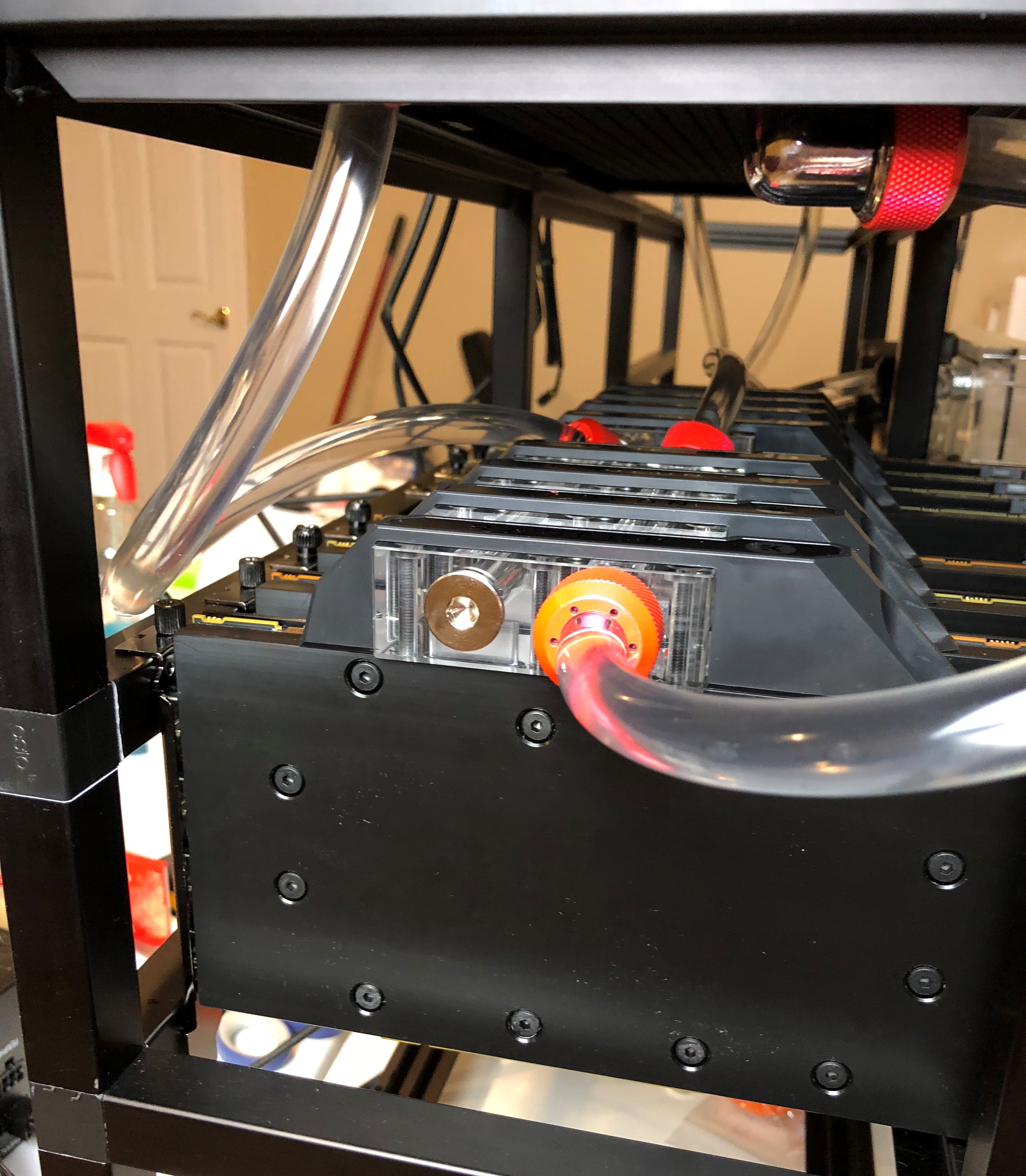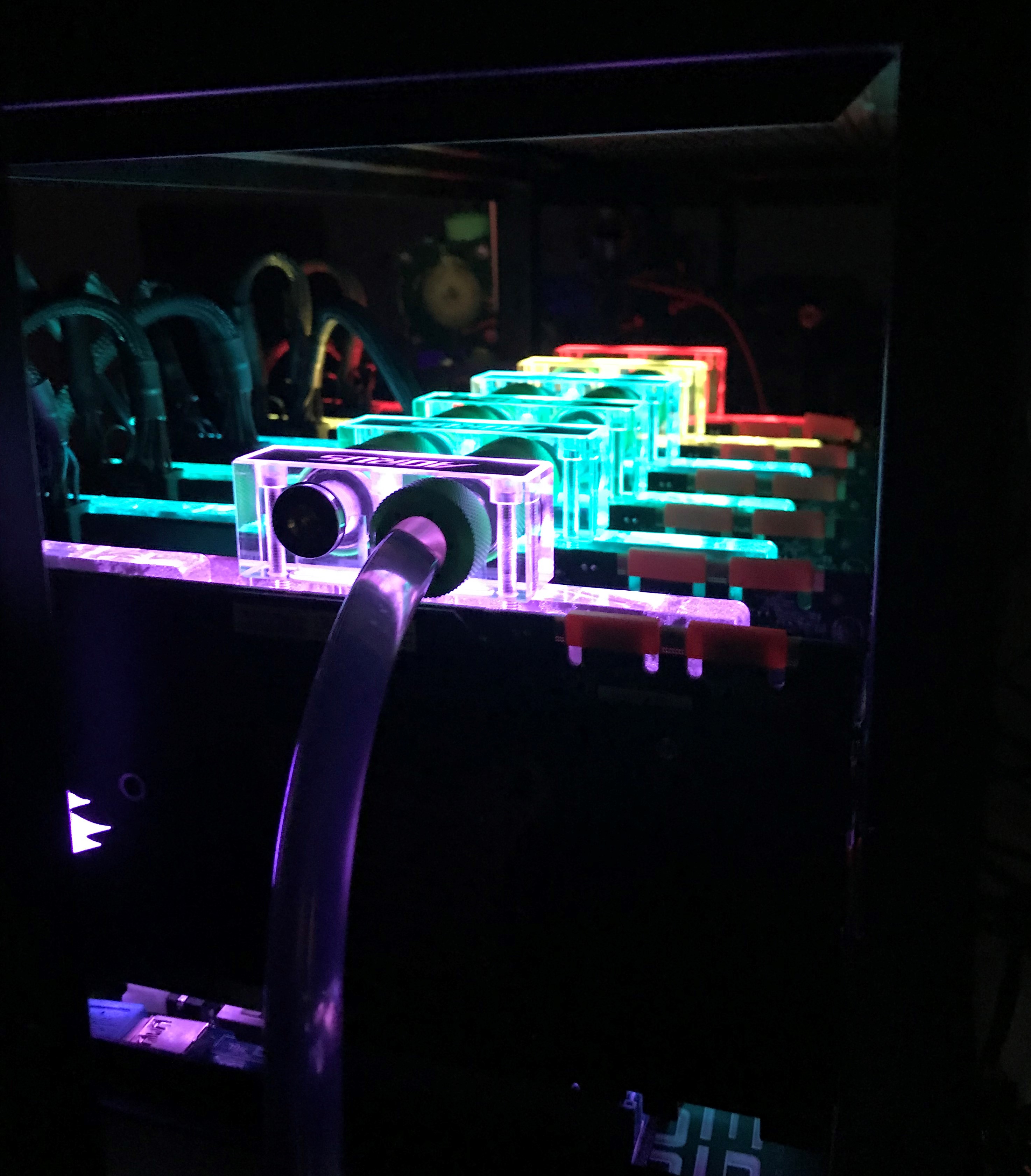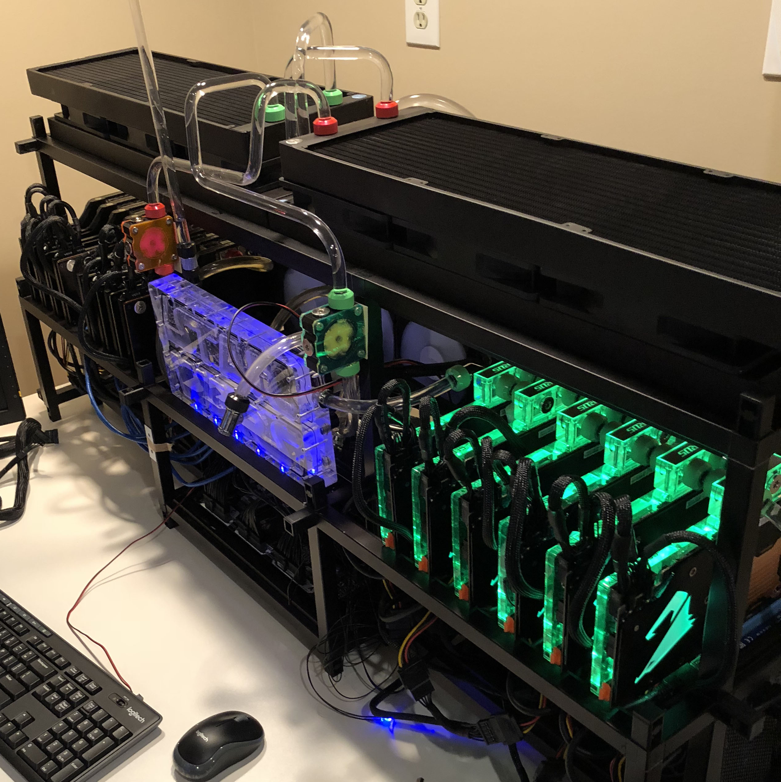 I've just now got the time to write up a post on this epic crypto rig I built last fall. I intended to publish a video but am a little too lazy to edit the footage so maybe I'll make one for phase 2. Version 1 was built in Dec 2017 - just in time to ride the massive price surge and it ROI'd in only 3 months, despite the additional cost for the liquid cooling parts.