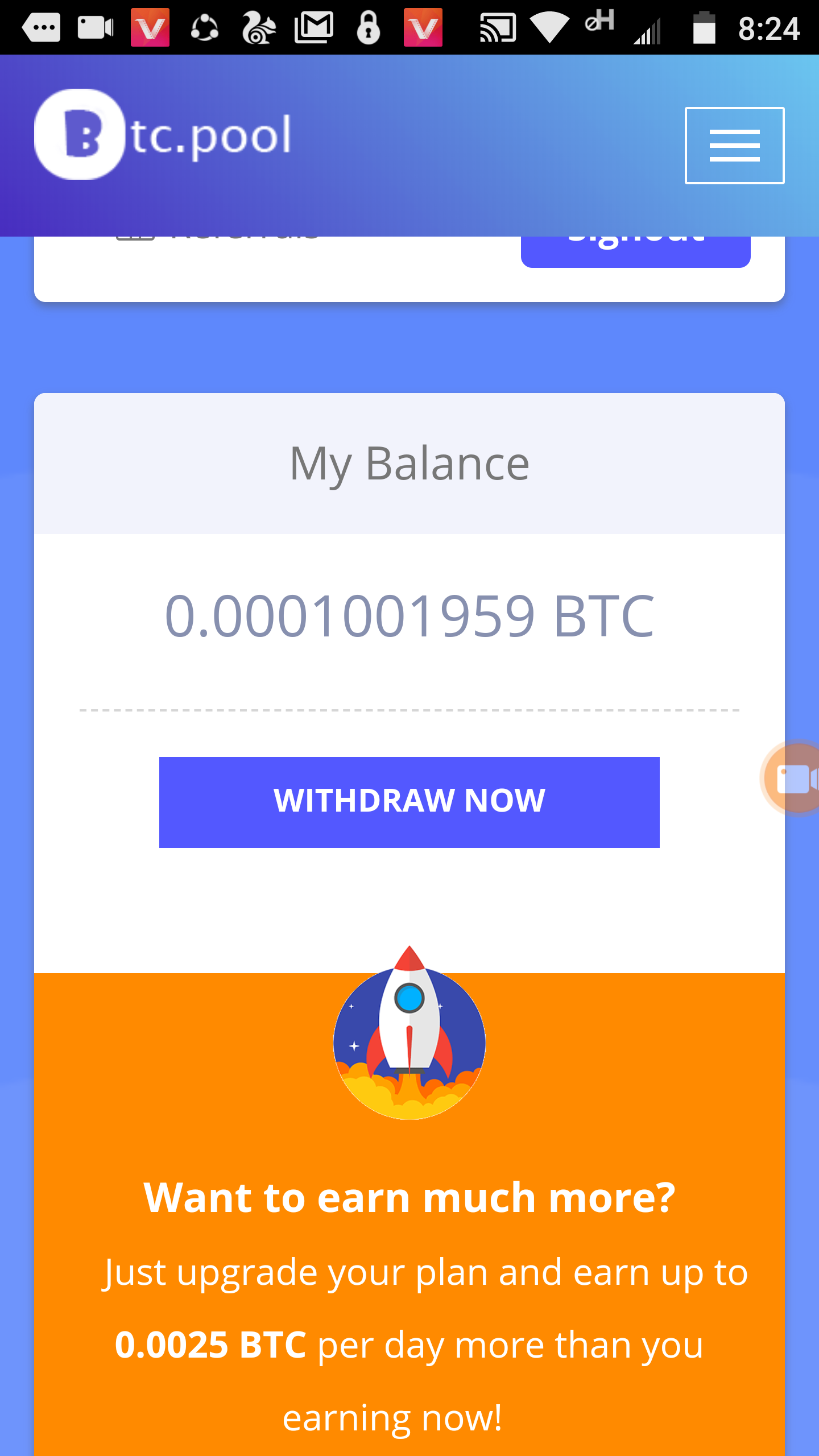 This great earn bitcoin mining site and every day earn 30000satosh without investment.