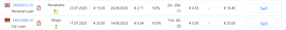 J'ai également choisi des placements grade A et B+. Ce sont des notes attribués par Mintos aux organismes auxquels il prête. Cela ajoute encore un peu de sécurité au placement.