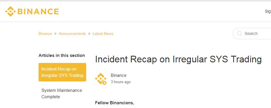 Binance and Syscoin make someone rich. Namely at Syscoin block 87670, a billion or more Syscoin were somehow mined, although Syscoin cap is set at 888 million. Alright, alright, so a bug was discovered and someone exploited it. Not really unheard of for an unknown coin.