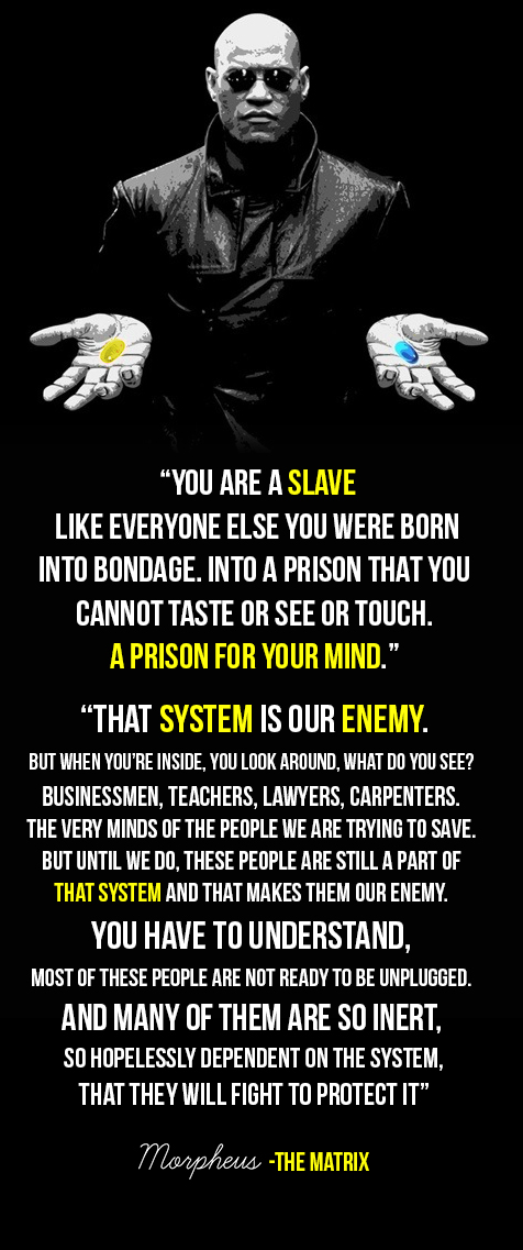 Our paradigm is defined by the questions that we ask. So in order to tear down this system, it's crucial that people start questioning their embedded beliefs and ask for more and better questions, before the system has ruined their minds and destroys the planet that they are living on. Questions like: