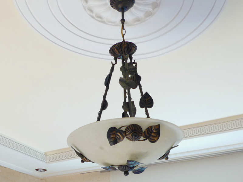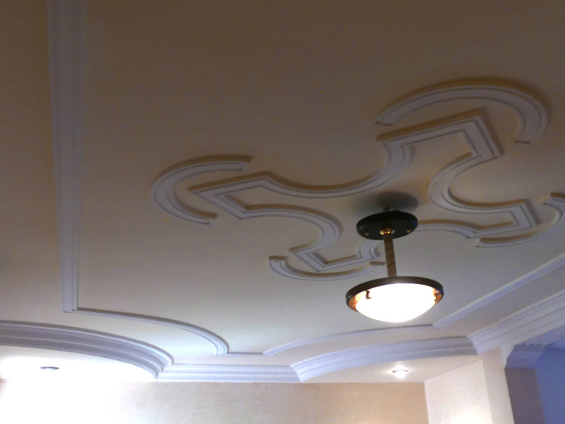 In the interest of balance and continuity, all corners of the room's ceiling bear the same design.