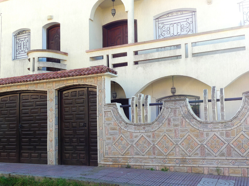 We have a front garden that's completely tiled and walled on all sides for security and privacy.
