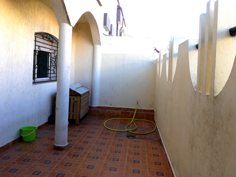 And a back garden that is also tiled and walled--no grass to mow ever!