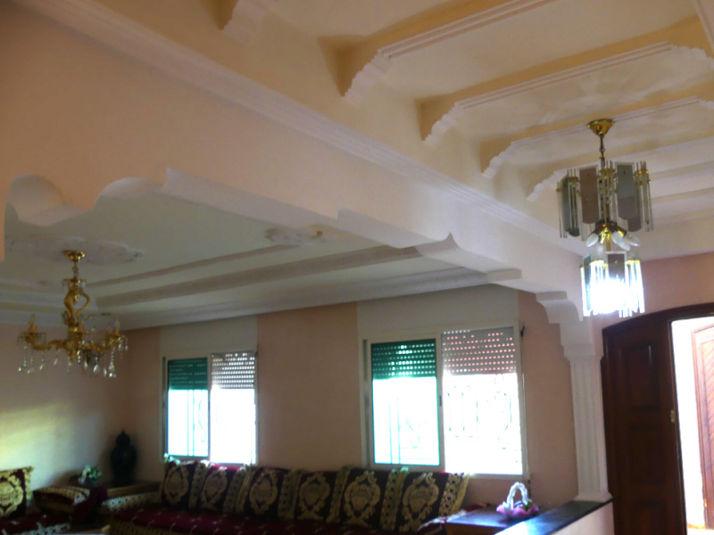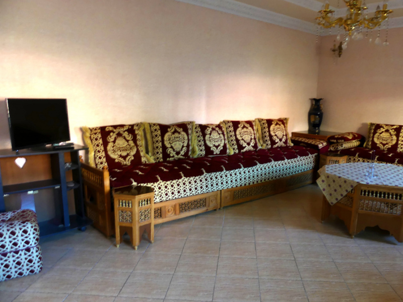 The living room is traditional Moroccan with a really nice dash of flatscreen technology there on the left hand side. LOL