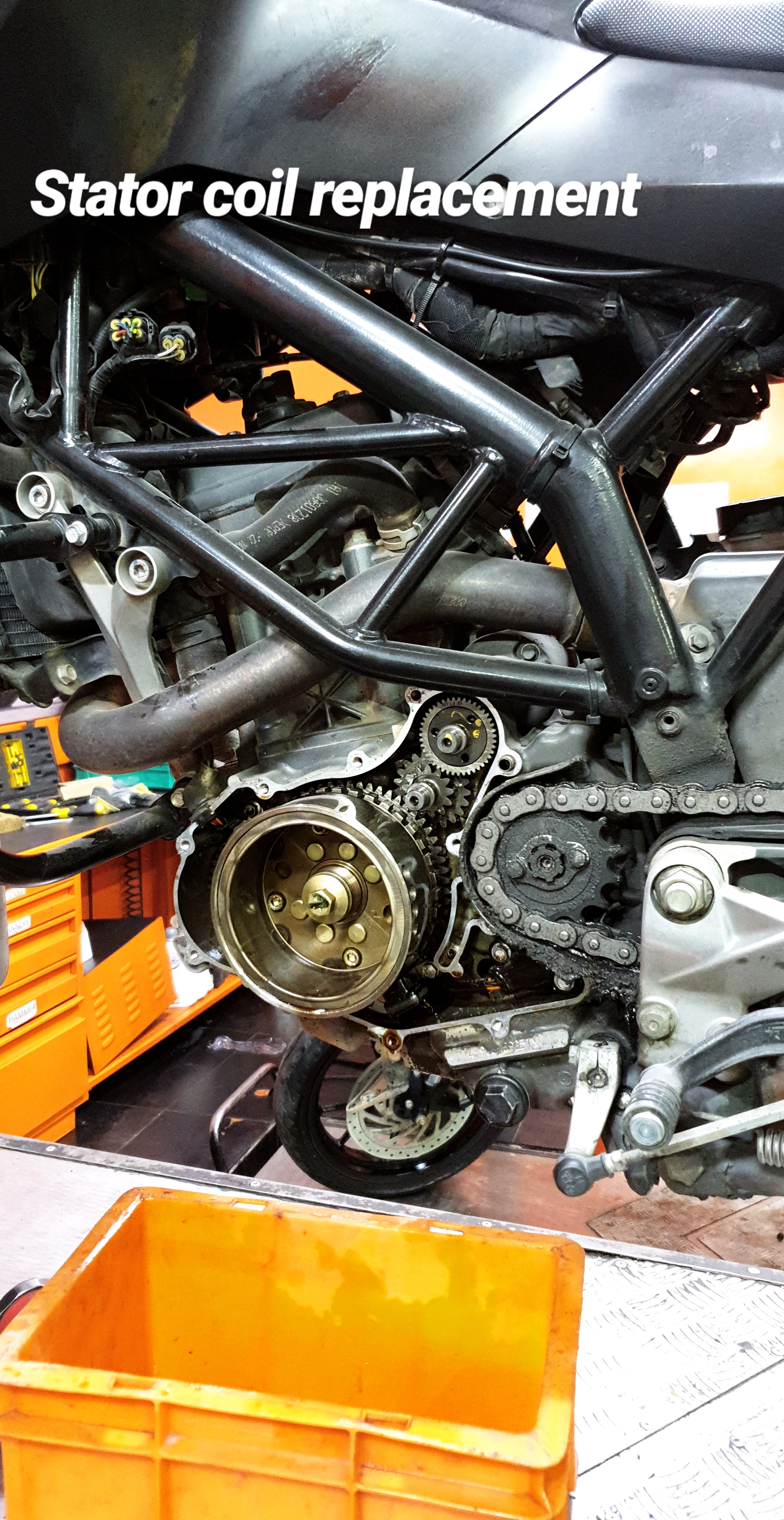 So, recently (a week ago) my friend and Steemian @its2bhan also got his stator coil replaced and he was suggested by the mechanic to get the casing of the stator replaced with the new one. KTM probably realised that there was a problem with the casing and changed its design.