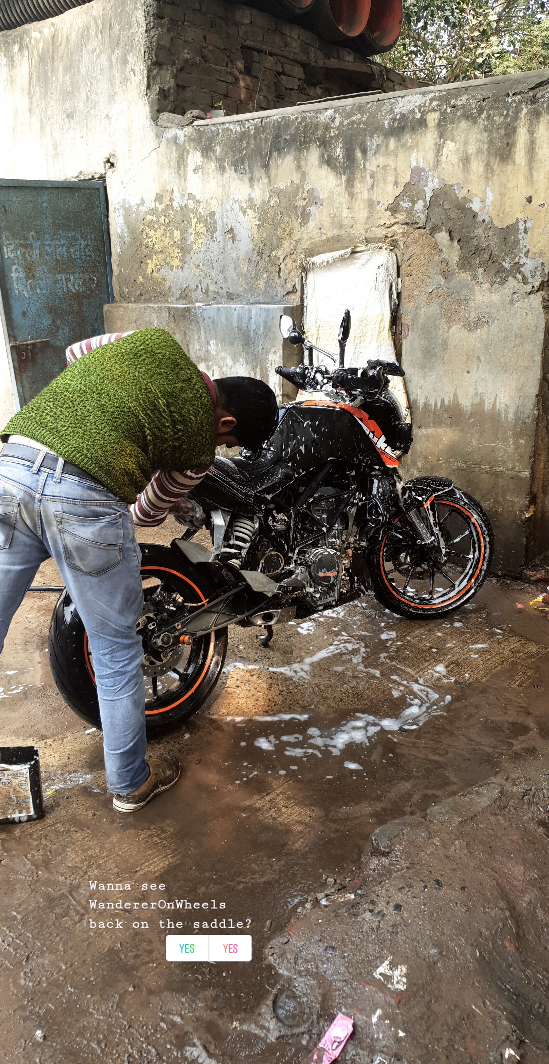 Then it happened, she gave up on me in peak traffic and refused to start again. The battery was completely drained out. It was then that I realized why the bike was losing power and turned off.