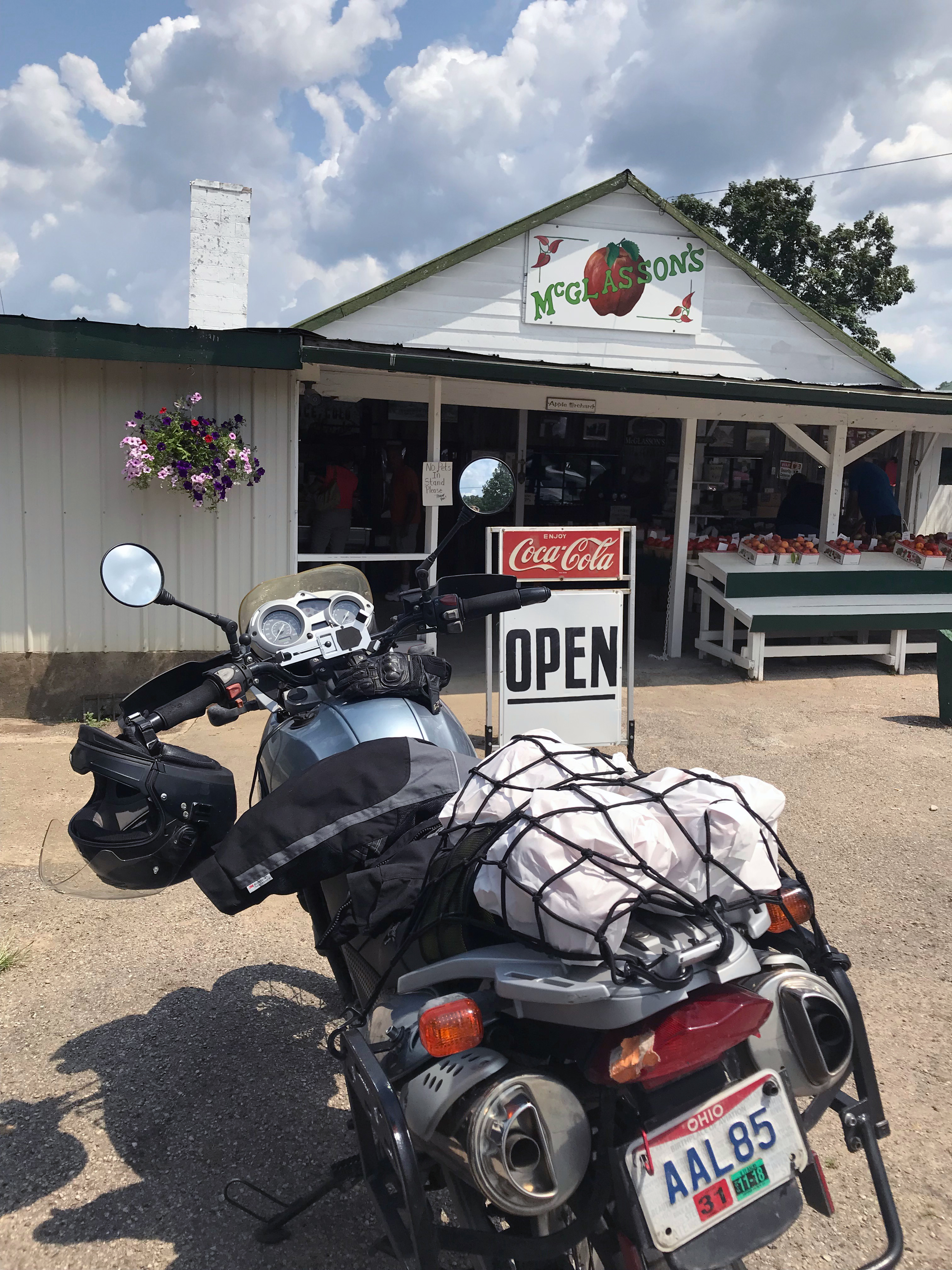 I never knew "rough tomatoes" had their own category until yesterday's motorcycle ride to McGlasson's Farms. A family owned and operated roadside stand, McGlasson's is a short ferry ride and quick moto-trip from Downtown Cincinnati. We started the morning at Fuel with an Iced Chai Latte, then hopped on the "Little Boone" ferry boat and paid our two dollars for the shortcut to Route 8 out of Cincinnati. If you've never been, Anderson Ferry is worth the ride even if you don't have a destination in mind. Listed on the National Register of Historic Places, the ferry boat has been hauling passengers across the Ohio River for over 200 years.