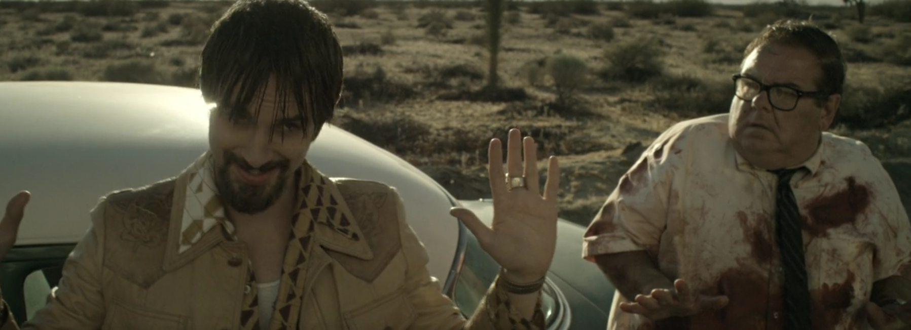 One of the best parts of the movie is when they have to bury a body in the desert. This is more difficult than it sounds. As they drive away they see the sign about that land being a construction site for a new casino. Which means they have to dig the body out and move it elsewhere. Poor semi serious fat accountant guy.