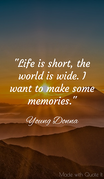 *Young Donna: I don’t know what my future holds, but the world is wide and I want to make some memories.