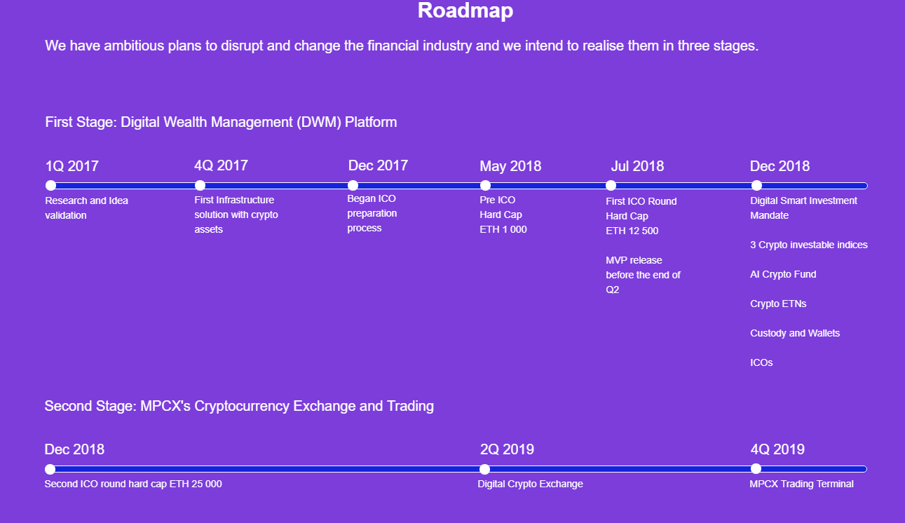 MPCX is a digital blockchain driven money services platform. Our semipermanent aim is to mixture all crypto money services into one place. MPCX is meant to service entities’ and individual’s wants within the areas of digital wealth management, cryptocurrency exchange and commercialism, digital banking, cryptoanalysis and ICO promotion, and crypto loaning. Within the short-run, MPCX can produce a blockchain driven decentralized scheme to manage innovative investors’ portfolios of crypto assets. In lightweight of the present market scenario with an enormous demand for and a really restricted provide of monetary management solutions, we tend to set to make the MPCX Platform to service the market opportunities. MPCX features a vital competitive advantage in this its team and founders along have over forty-five years of expertise in finance. The resultant experience and shopper relationships offer MPCX the chance to supply distinctive product tailored to our shoppers.