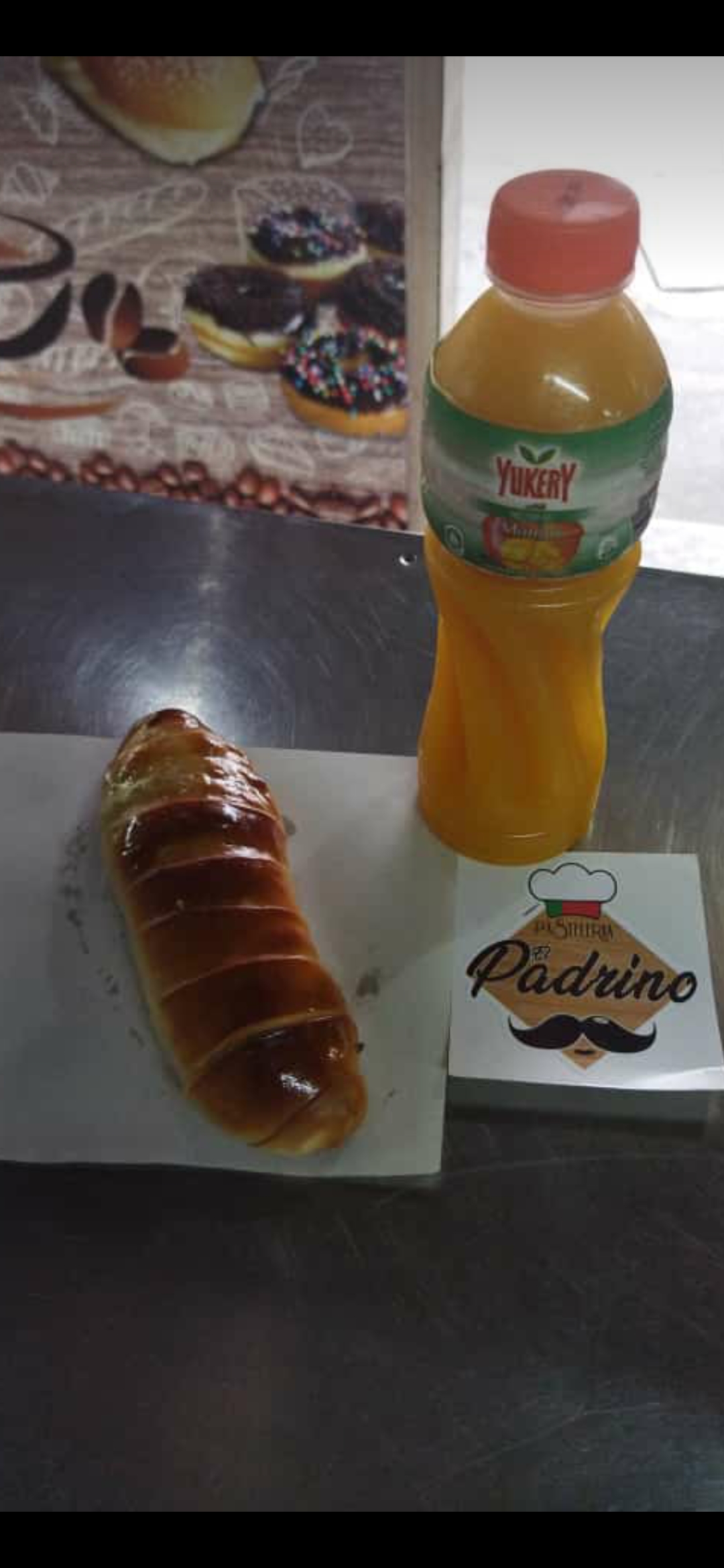 Luego fui a panadería El Padrino dónde m regalaron este excelente y bueno sabroso cachito de jamón y el Yukery de mango se los recomiendo