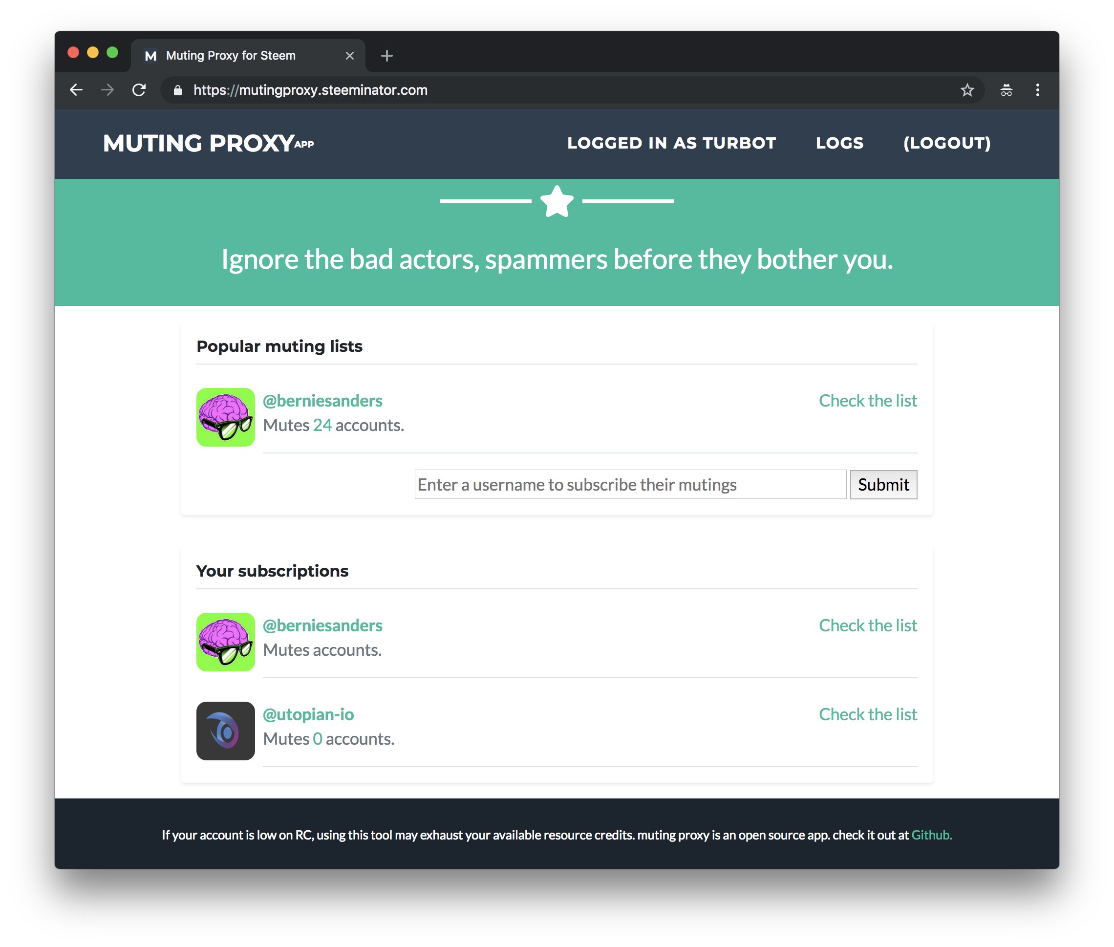 Thanks for the contribution, @emrebeyler! I've never muted anyone, but it seems like a very useful application for people who hate spam / don't want to deal with certain users. I haven't really kept up to date with how much RC certain transactions cost, but is there maybe a way to calculate or estimate this before subscribing to someone's muting list? This way you could give a warning about the amount that will be used, which could prevent people from accidentally using up all their RC.