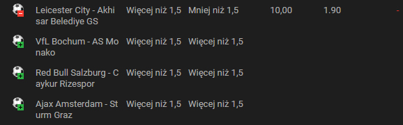 dzisiaj LE i w kwalifikacjach jest z czego wybierać... dlatego "zbudowałem" sobie dwa kupony.