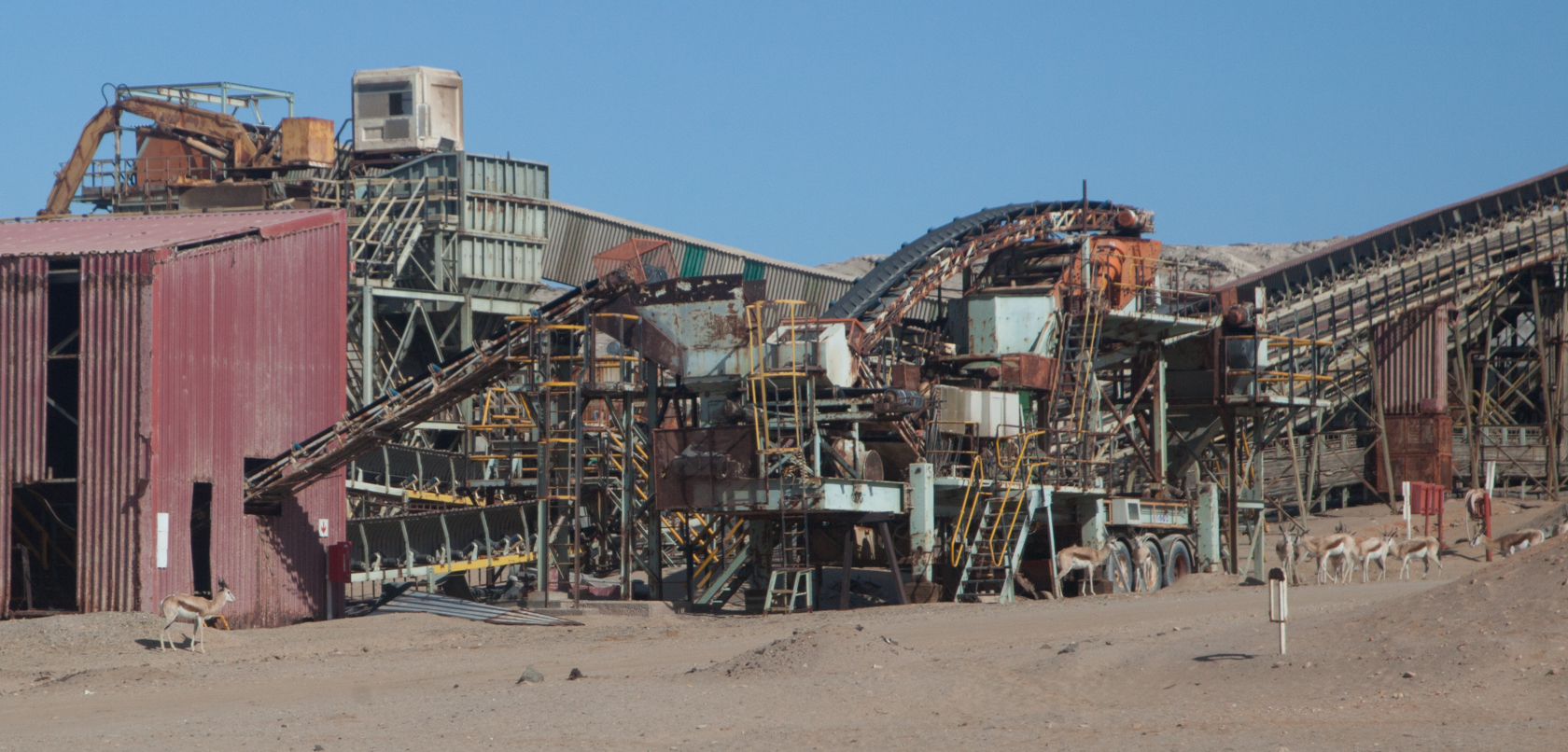 On the way out of present day mining area I noticed a herd of Springbok against this structure.