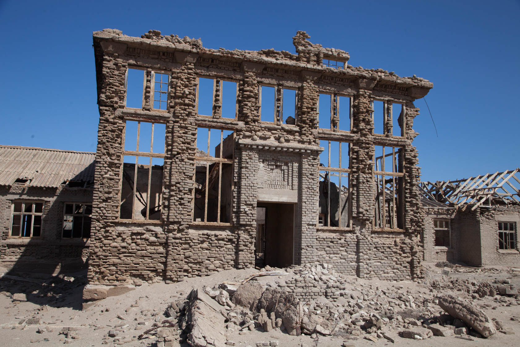 The derelict theatre building known as the Casino Is the most prominent structure on the mine, featured in the TV series “Life after People”. The episode dealt with the effects of wind and sand on the buildings in this hostile environment.