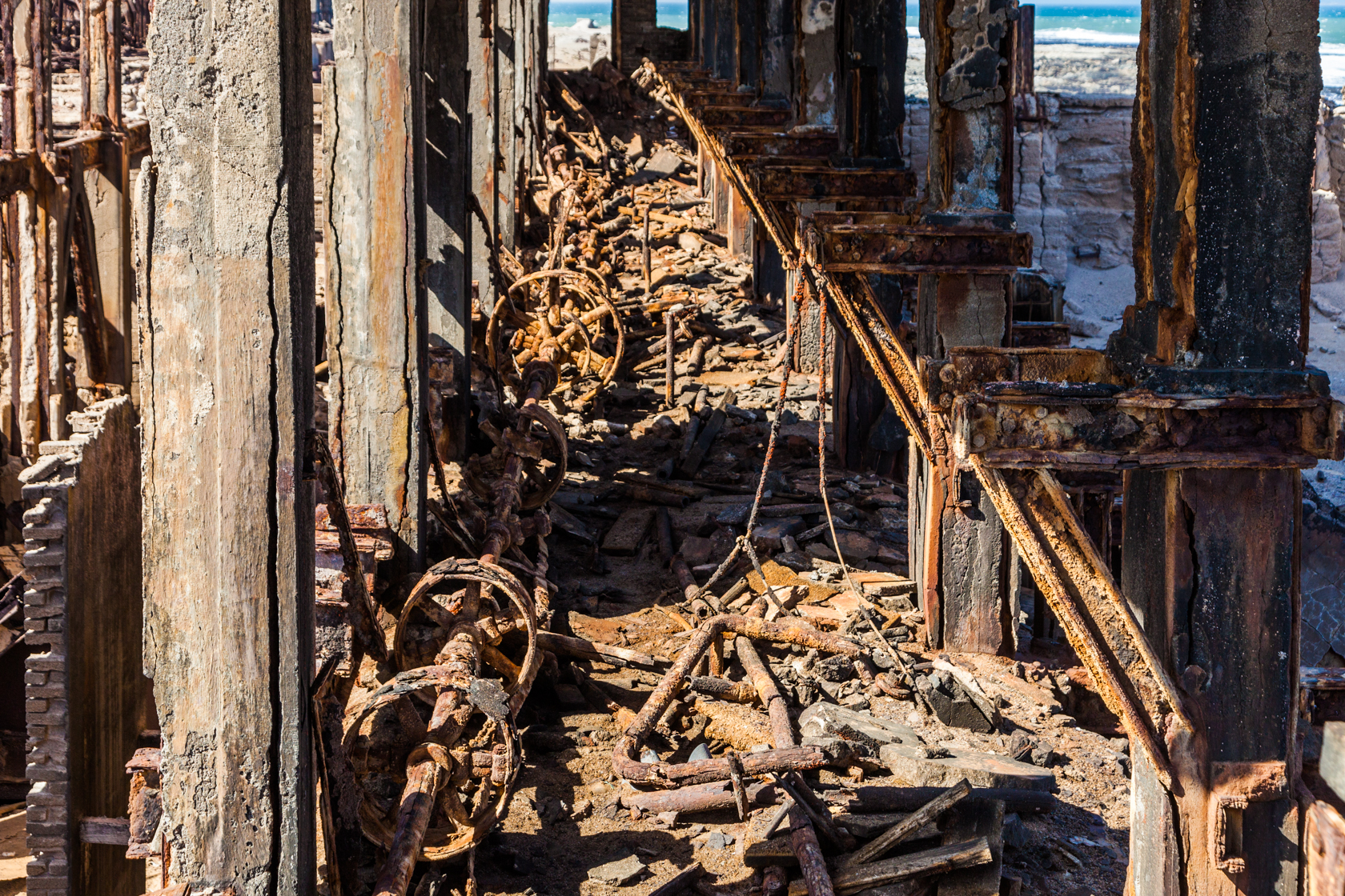 Mining structures at the present time totally rusted by the salt air.