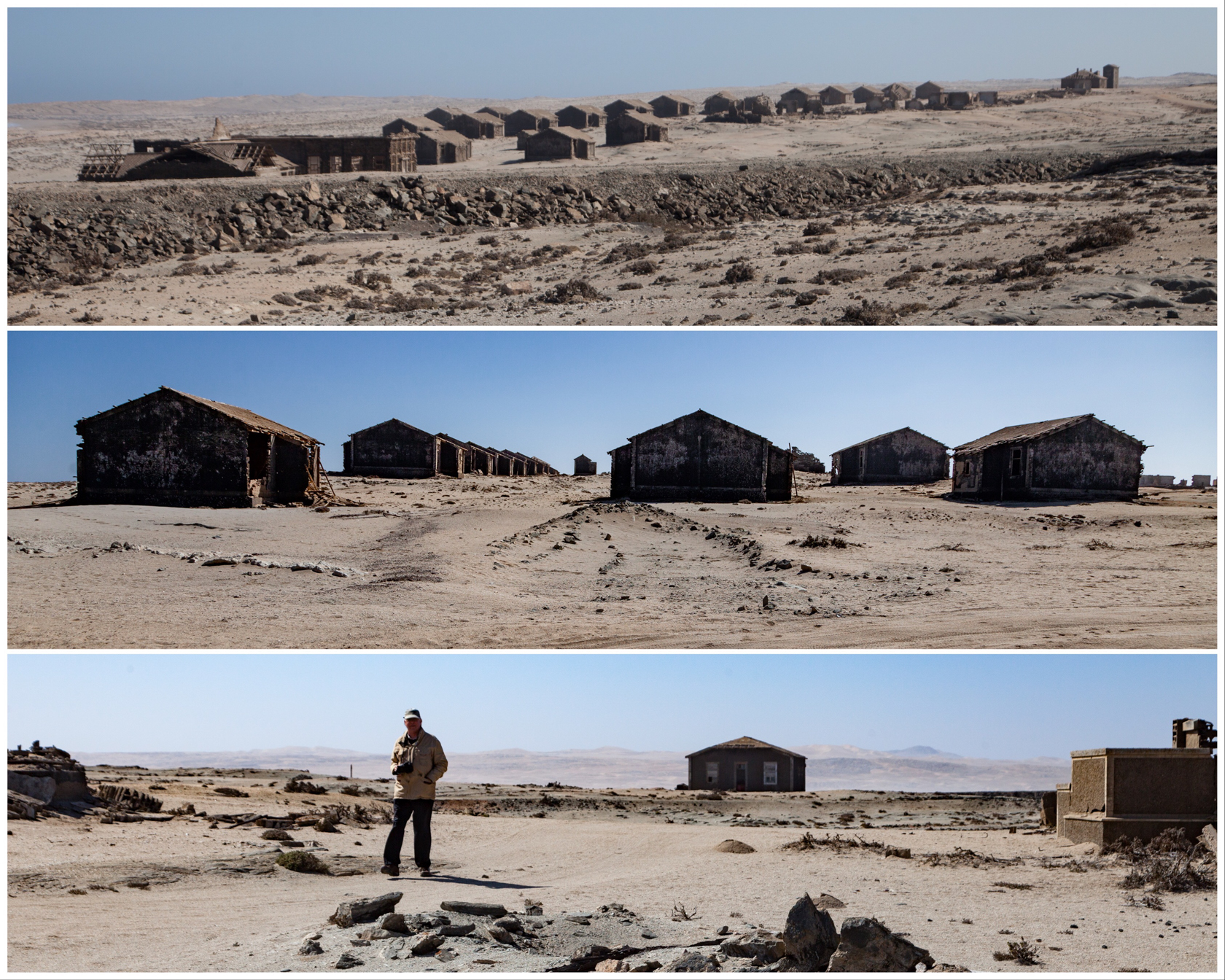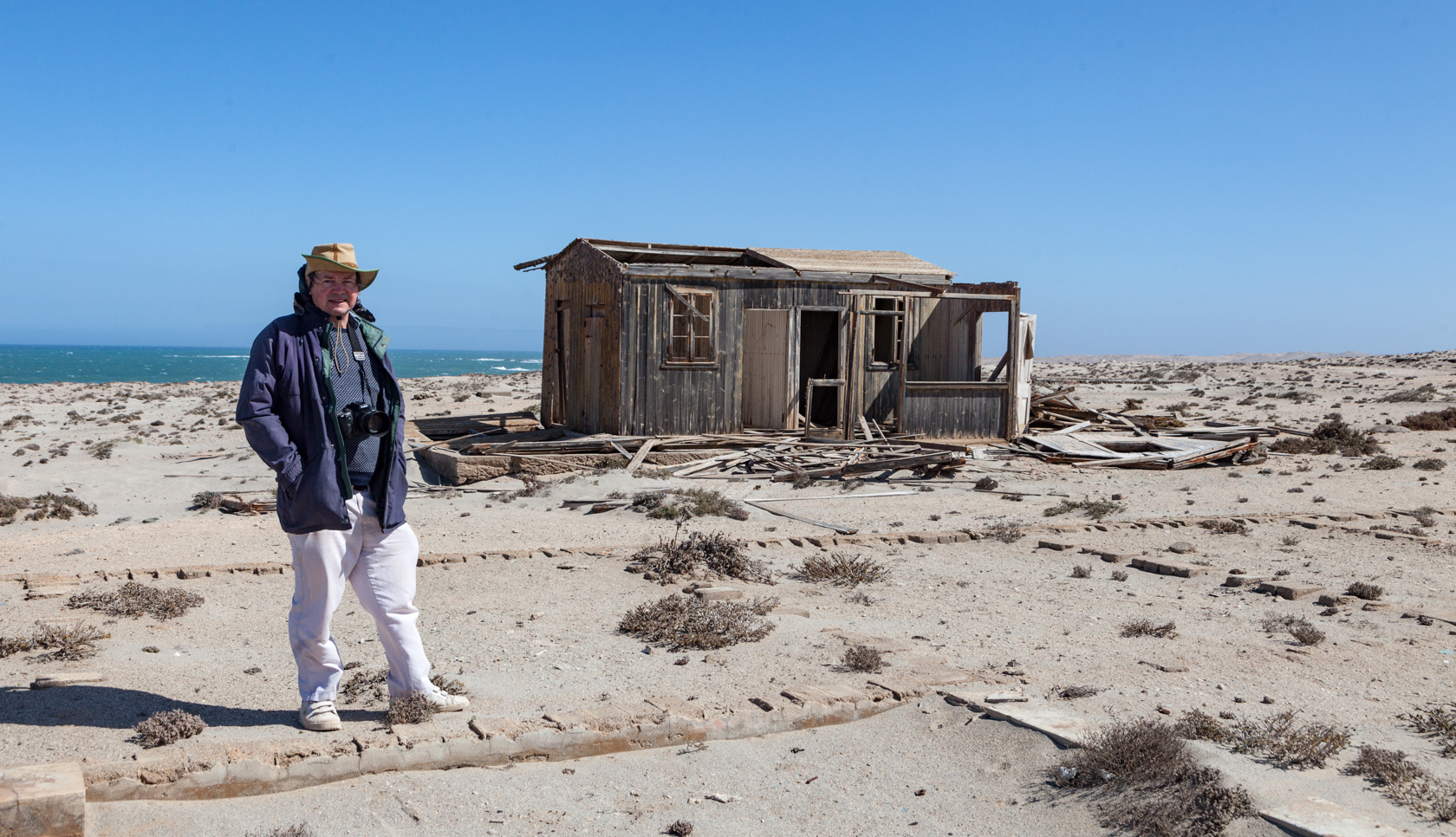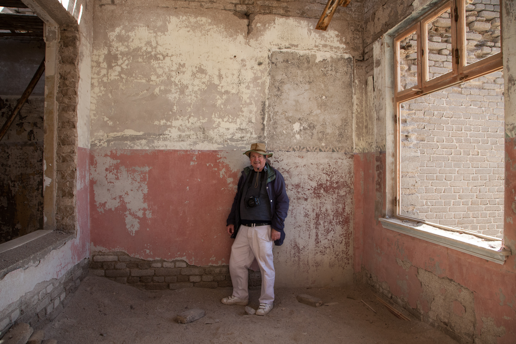 In August 2015, my wife Patricia, and friend Nigel and I went on a road-trip from Cape Town to Luderitz in Namibia. One of the places we wanted to visit was the ghost mining village of Elizabethbucht on the coast of Namibia, now known as Elizabeth Bay. This was in the restricted zone, the Sperregebiet, and permits were required to gain entry. One had to be accompanied by a guide. (I believe you can no longer visit this mining village as the tours have ceased.) After the paper work required for permits (certified copies of passports were required and sent in advance from South Africa) was completed in Luderitz, we set off in our guide's vehicle. On entering the mining area, we passed through a checkpoint. All food had to be handed in and stored until our return. On leaving the compound one is x-rayed and searched to make sure no diamonds were picked up and smuggled out. In fact you are warned from venturing into the desert from most roads in the area as it is the Sperregebiet. (forbidden area)