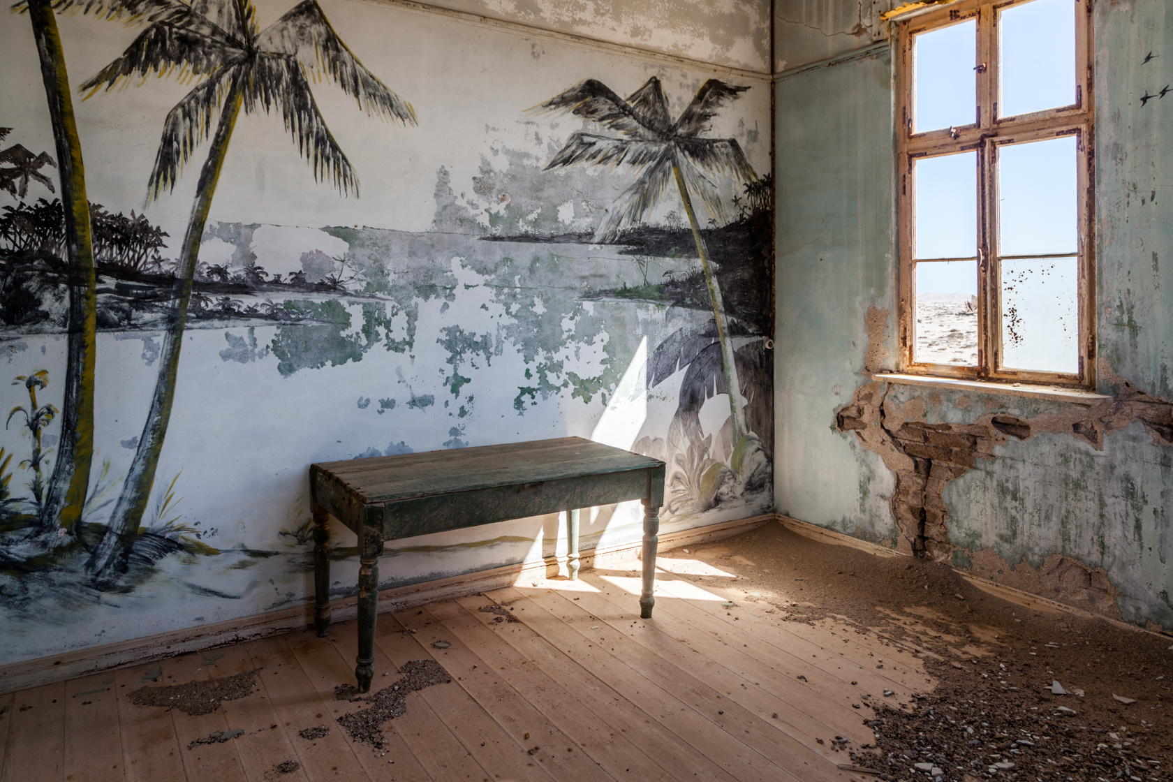 Kolmanskop ghost town, a deserted mining village near Luderitz, Namibia. Well worth a visit.