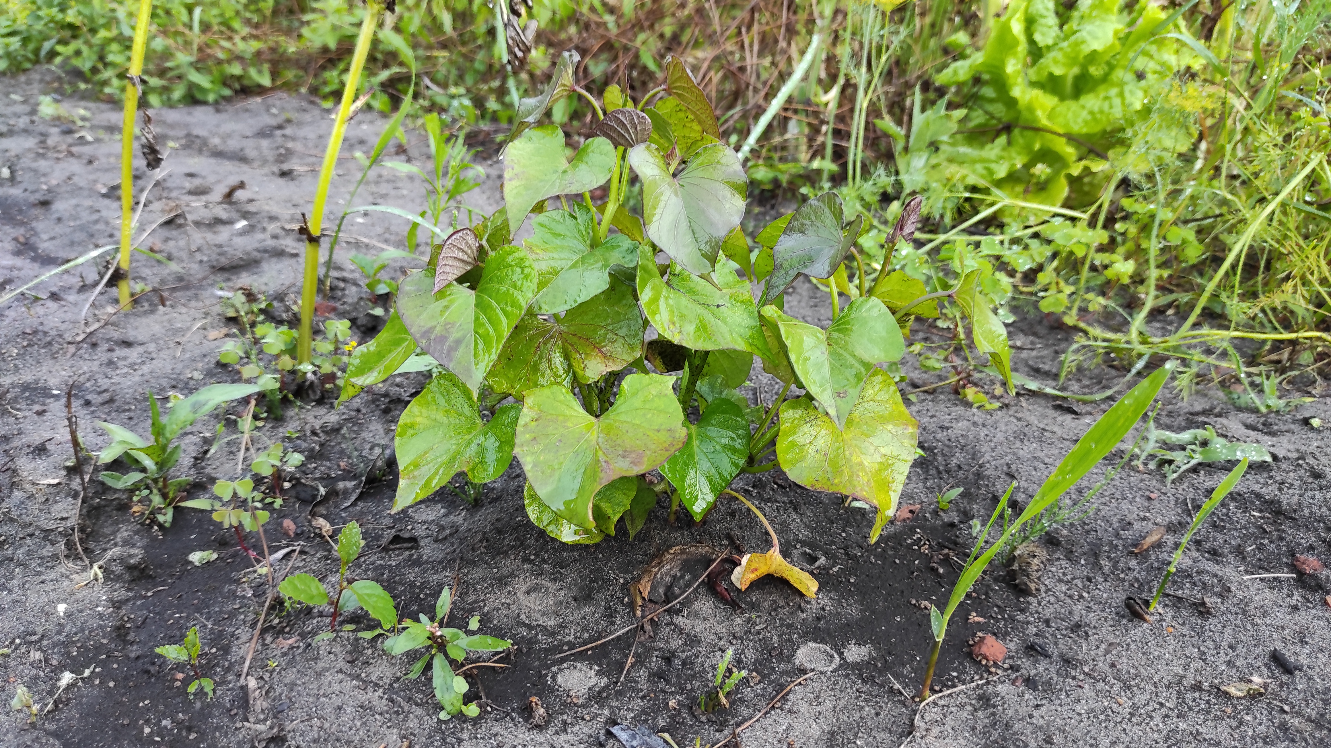 Süßkartoffel wächst im Beetdeironn (46)in #natur • 10 months ago Süßkartoffel im Gartenbeet – Kraft aus der Erde