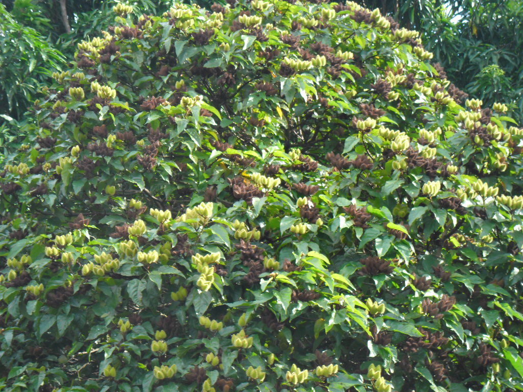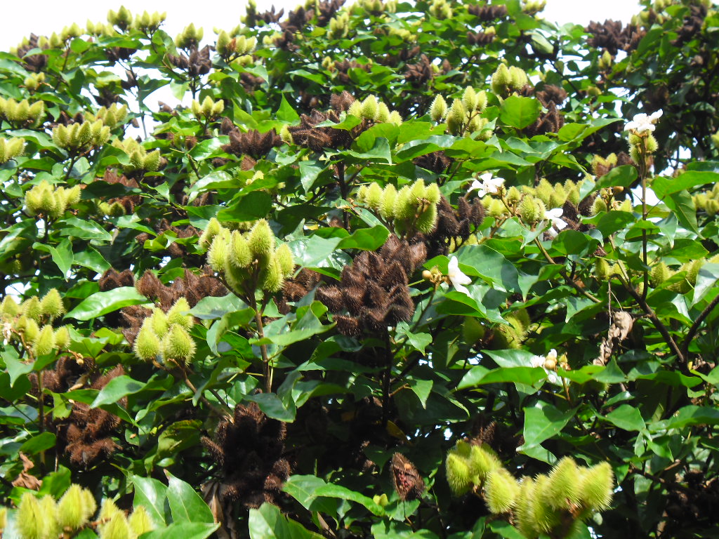 esta planta produce un condimento que es muy utilizado en comidas, la planta de onoto ( como se le conoce en Venezuela ) su nombre científico Bixa orellana se encuentra en toda América, puede llegar a medir hasta 4 mts de altura es de hojas ovaladas y su fruto es una capsula espinosa ovoide de color rojo cuando está madura. Este fruto es utilizado para colorear las comidas ( aquí en Venezuela especialmente la hallaca ) Es un árbol muy bonito cuando esta cargado de frutos.