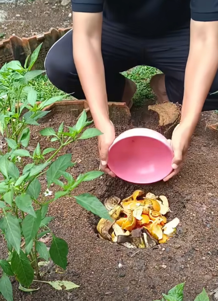 Desde que comencé a aplicar esta práctica, he notado que mis plantas lucen más verdes, son más resistentes y producen una cosecha mucho más abundante. Es una técnica de jardinería sostenible y de «residuo cero» que transforma tu «basura» en un ecosistema próspero. La próxima vez que termines de comer una fruta, no la tires a la basura; ¡dirígete mejor a tu jardín!