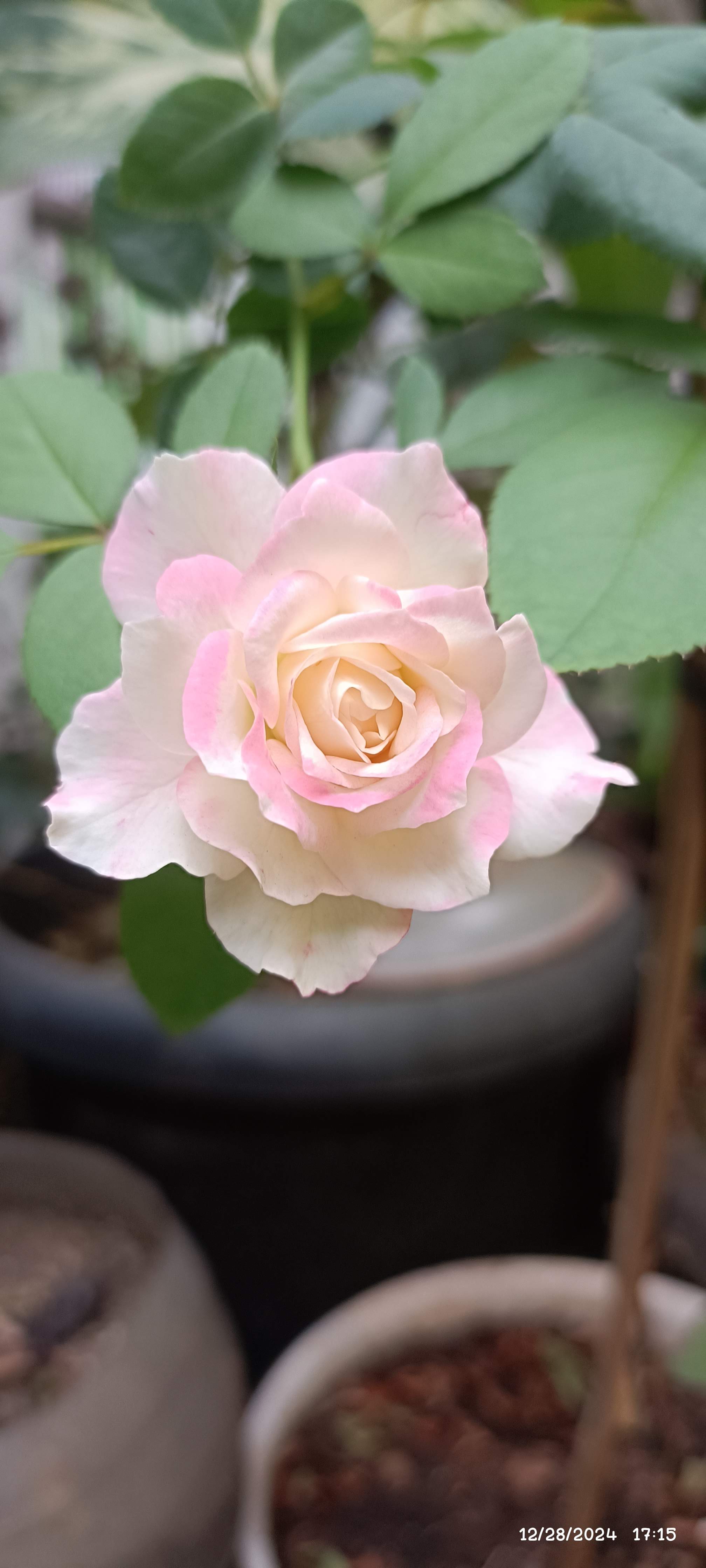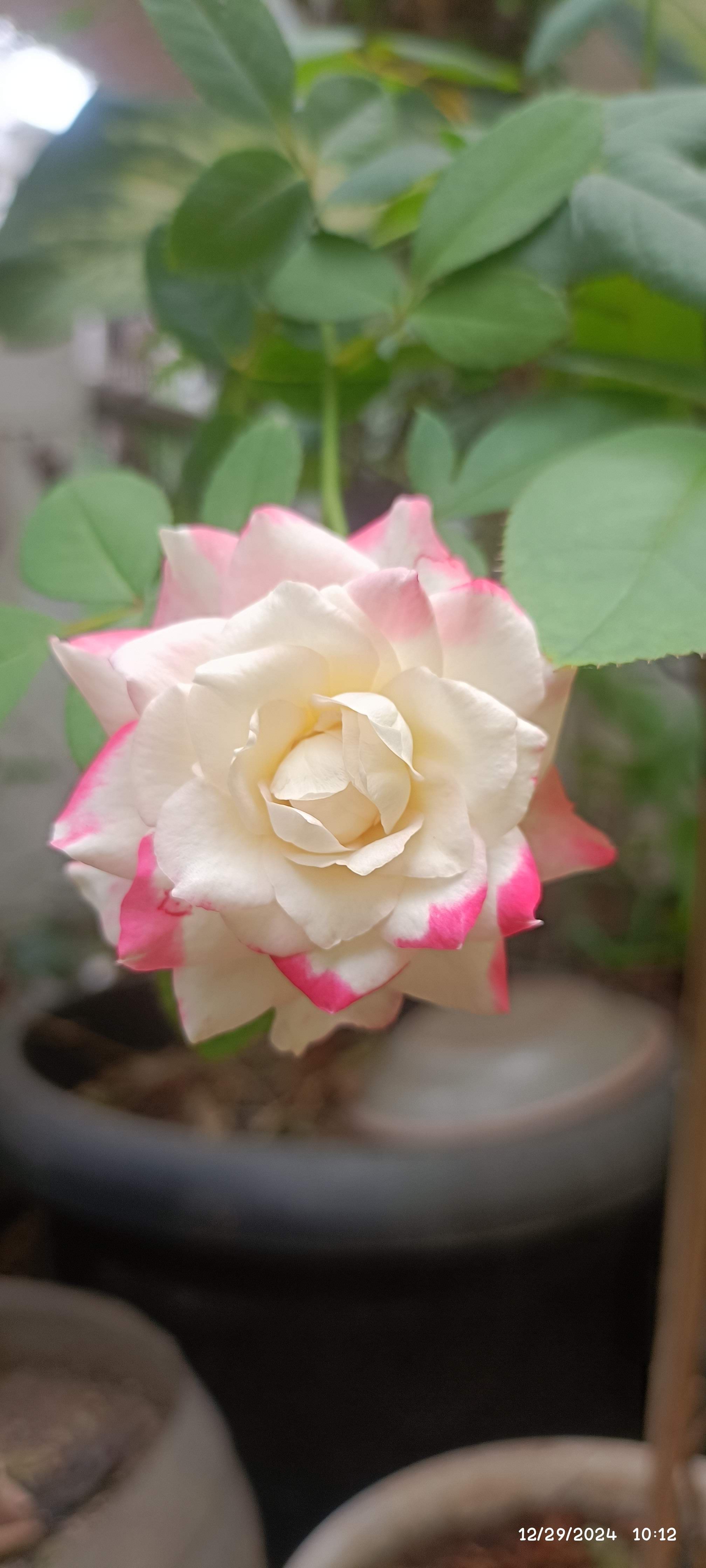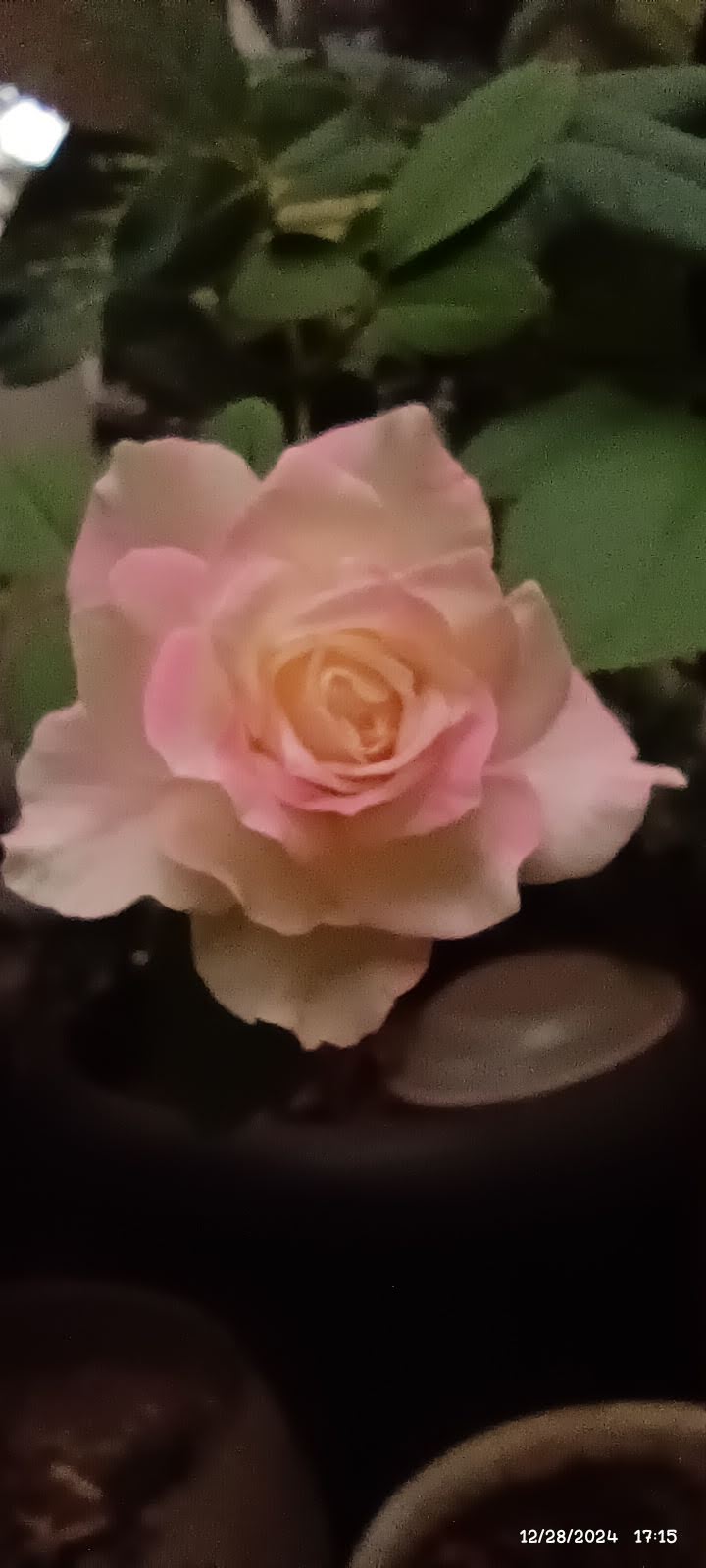Hari Senin, 30.12.2024. penasaran dengan perubahan warnanya, jadi motret sekuntum mawar lagi. Oohh, penyebaran warnanya jadi lebih jelas 🤨 bisa jadi karena kelopaknya semakin lebar dan mulai berkurang vitalitasnya.