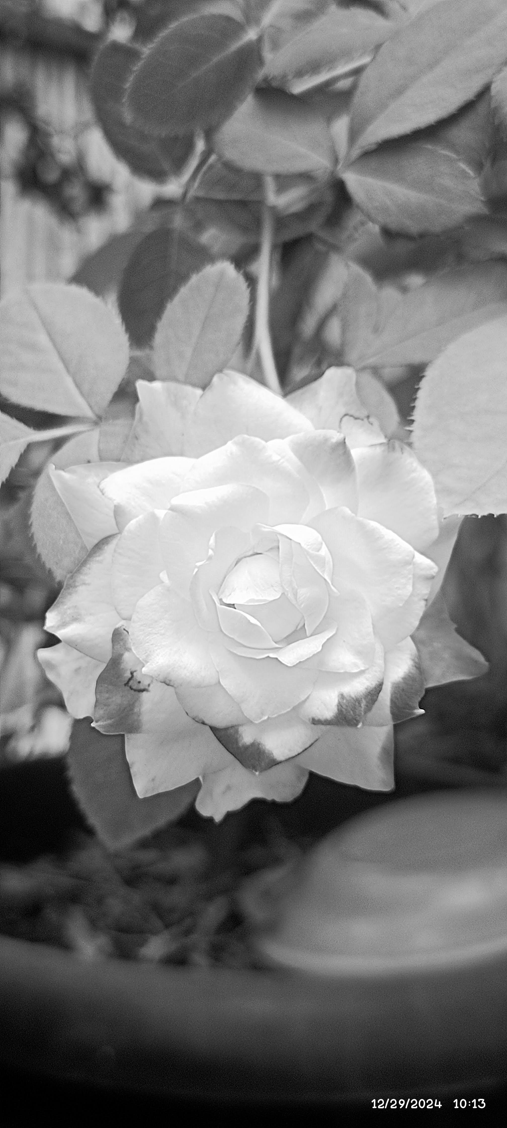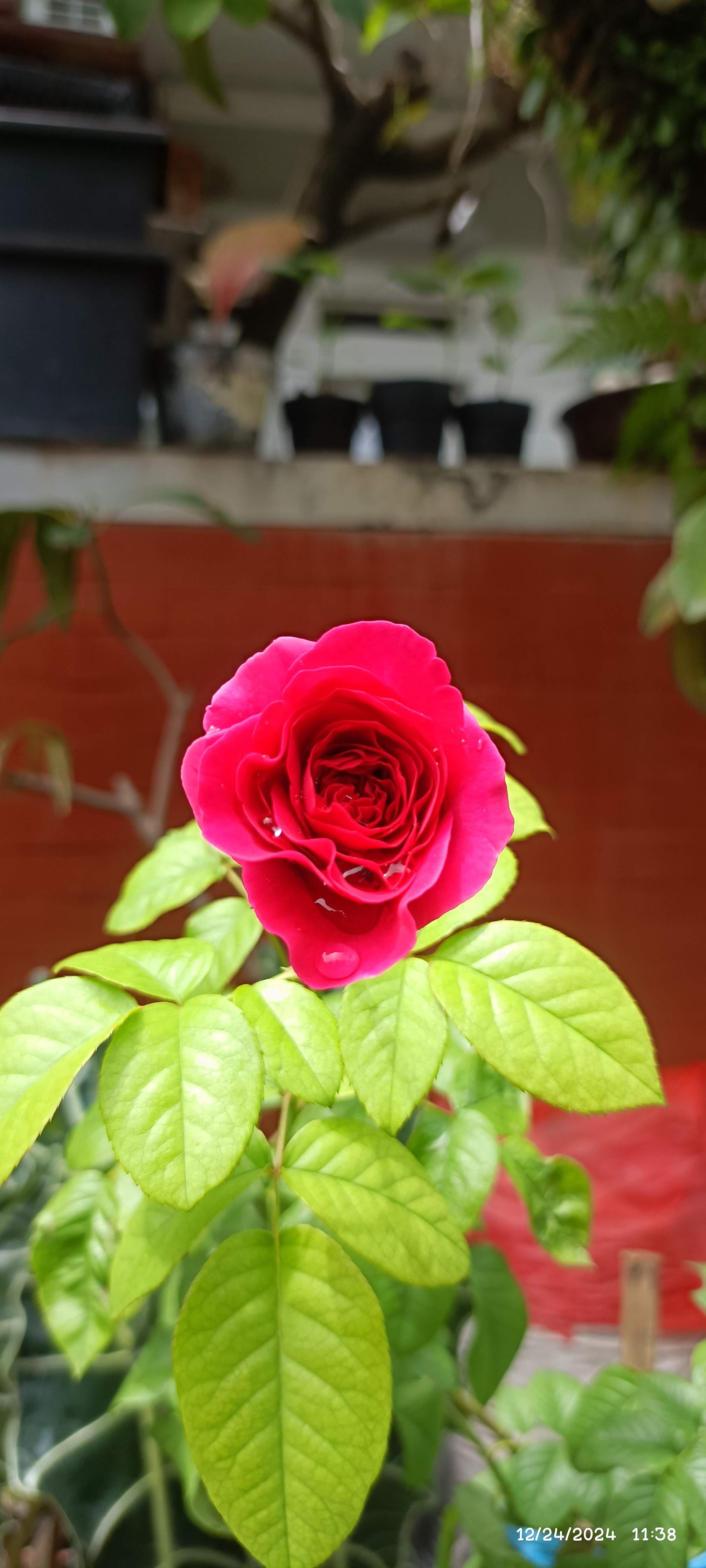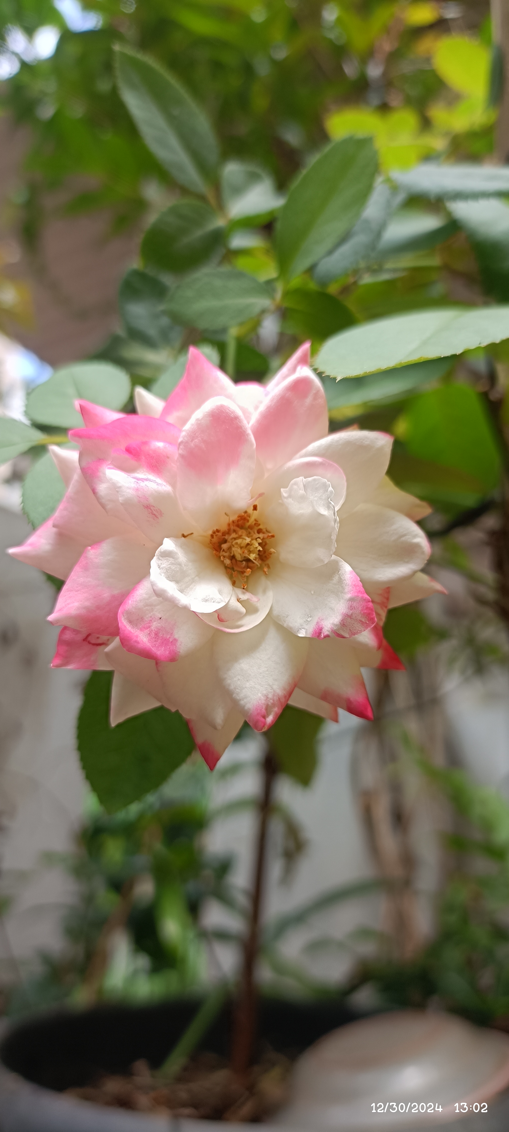 Hari Senin, 30.12.2024. penasaran dengan perubahan warnanya, jadi motret sekuntum mawar lagi. Oohh, penyebaran warnanya jadi lebih jelas 🤨 bisa jadi karena kelopaknya semakin lebar dan mulai berkurang vitalitasnya.