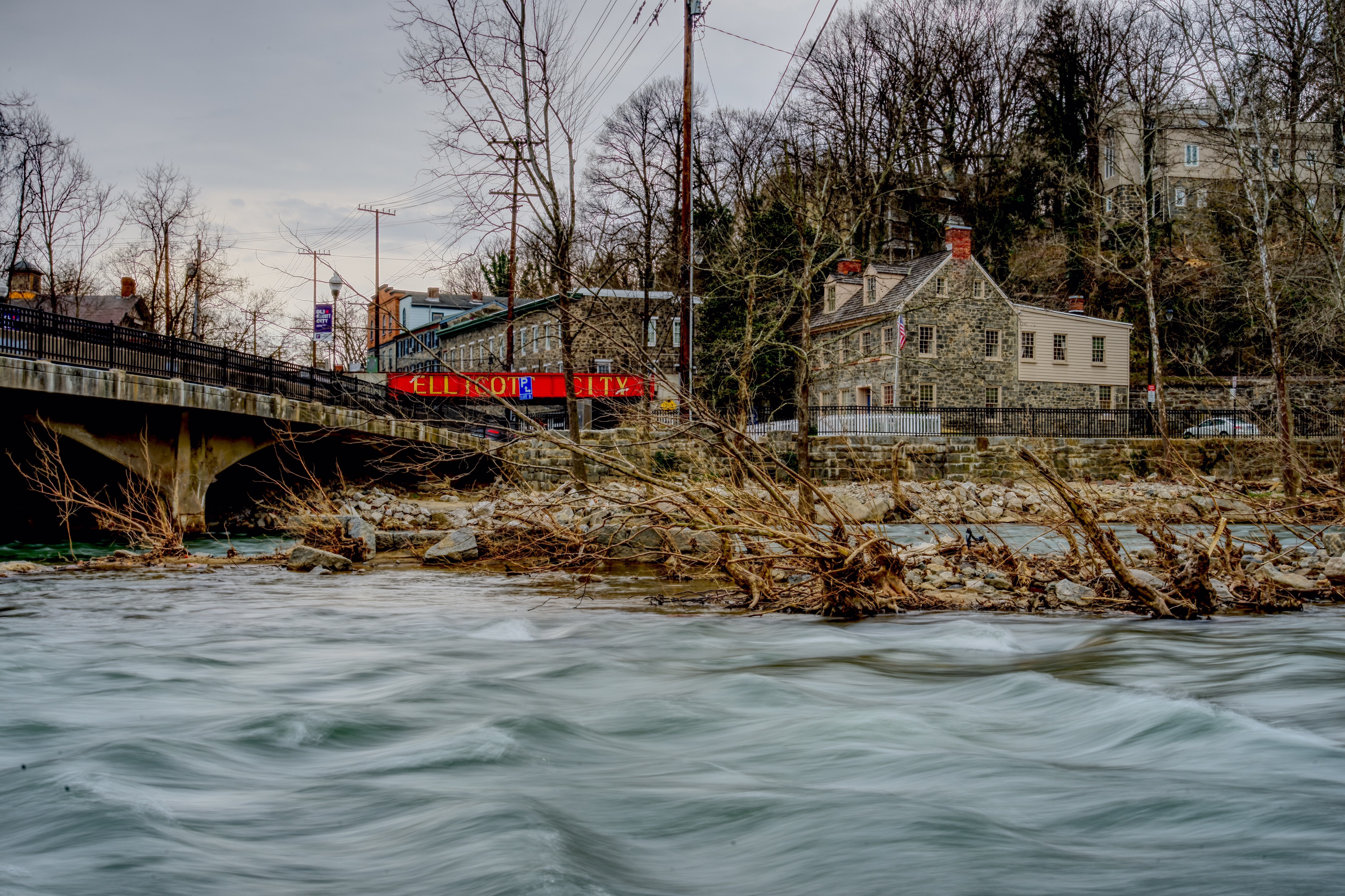I went to the historic area of my little town of Ellicott City, Maryland today to take some shots along the Patapsco River. Ellicott City is a colonial era mill town and also was the first stop on the Baltimore and Ohio rail line. The train station, now a museum, is the oldest surviving railroad station in the U.S.