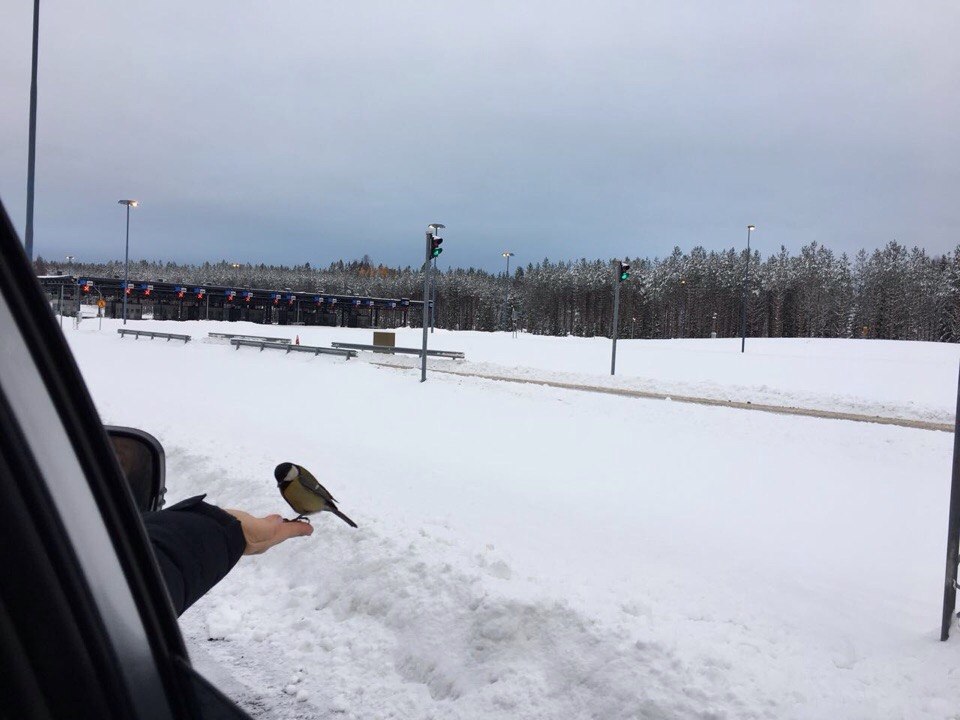 Dont dorget to interact with nature even in winter!doxtor (60)in #nature • 7 years ago Dont dorget to interact with nature even in winter! Feeding bird while waiting in queue.