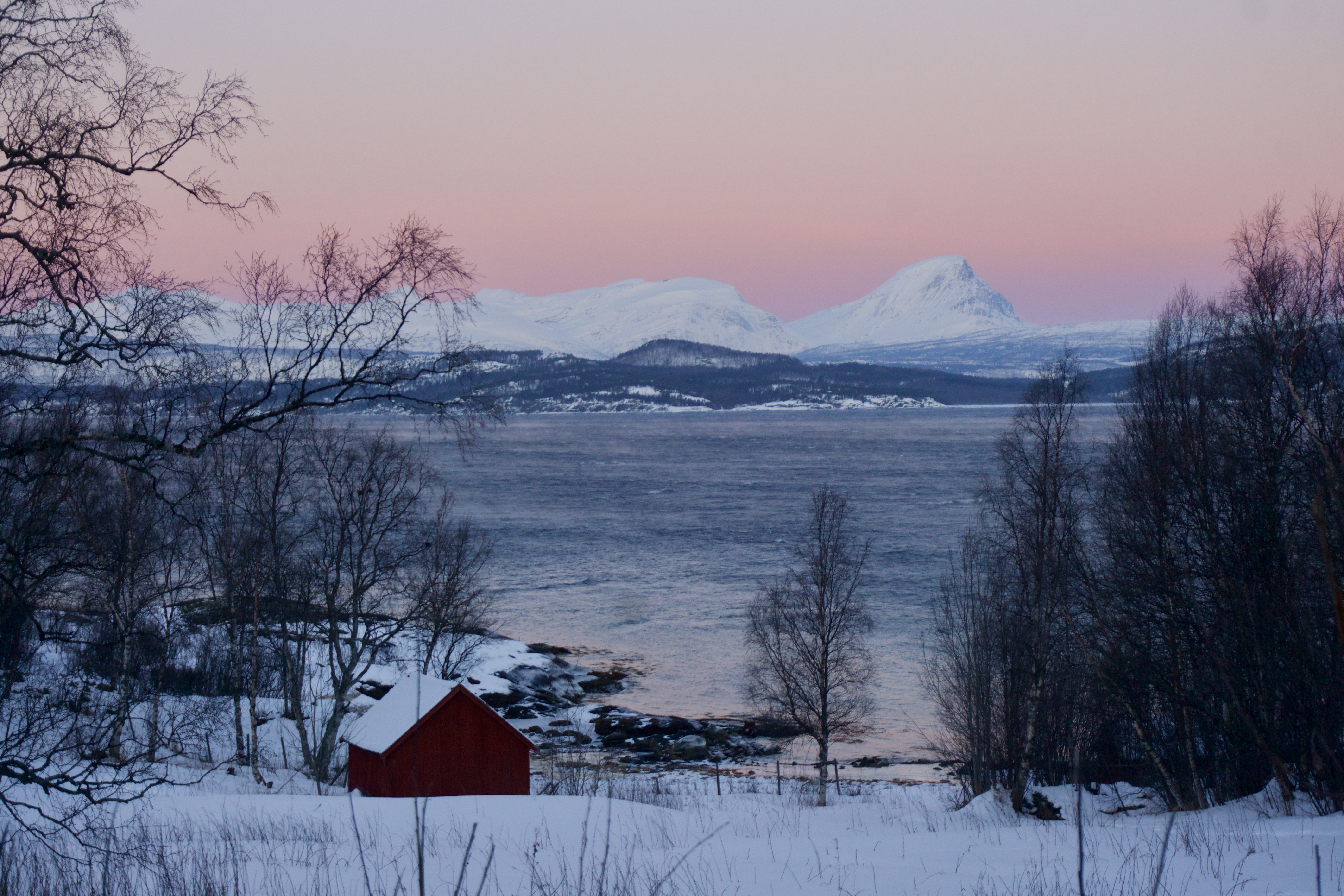 Beautiful sky today in the morning. A cold and windy morning, still some frost smoke on the sea.