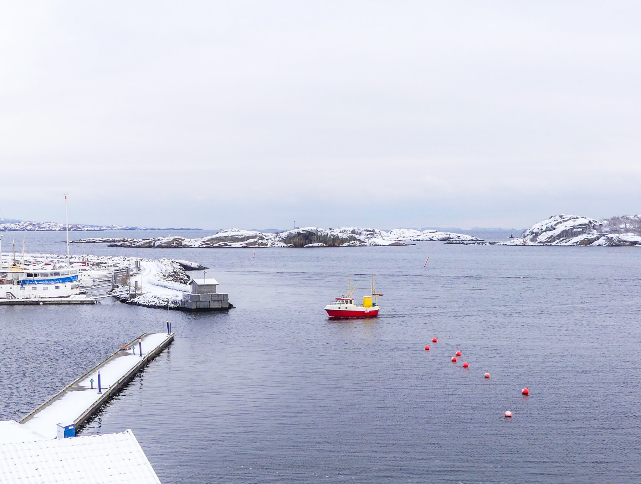 the winters are long, dark and so cold that the harbor freezes. some years with a prolonged period of slack winds the open sea freezes far out beyond the harbor. most years fishing vessels operate year round when there are clear sunny days with calm enough seas to venture out to sea. here are the entrance to stavern harbor