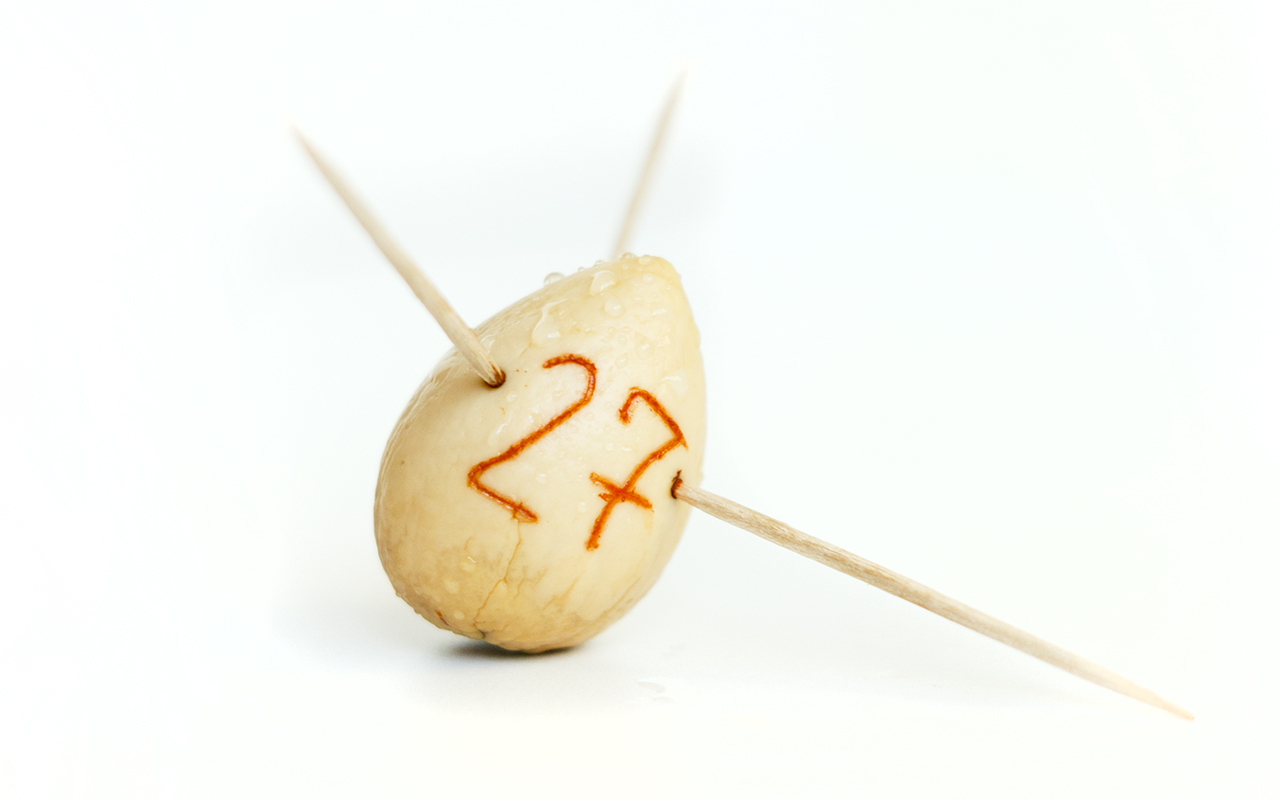 Take a toothpick and a small glass beaker with clear water. After determining the number of cotyledons in the seed (usually two) - insert a few millimeters of toothpick in them just above the middle of the seed.