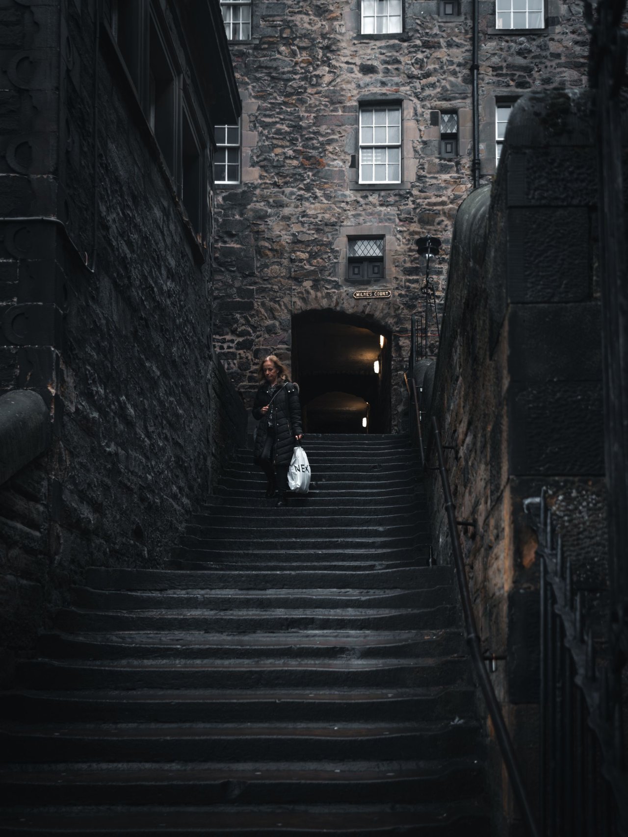 Another morning stroll through Edinburgh’s Old Town, and once again I had no shortage of interesting subjects and scenes worth photographing. New College, with its famous Assembly Hall, was unfortunately closed, so I could only capture the exterior with my camera. I continued along the Royal Mile to the castle, from where I was able to capture the cloudy sky above the city. Nearby, a street musician dressed in traditional Scottish clothing was performing. A narrow alleyway revealed a view down to the imposing Scott Monument. The walk ended at the Toolboth Tavern with its unique clock. Later, in the afternoon, I headed to the famous Forth Bridge, from which I’ll be sharing some impressions with you in my next post