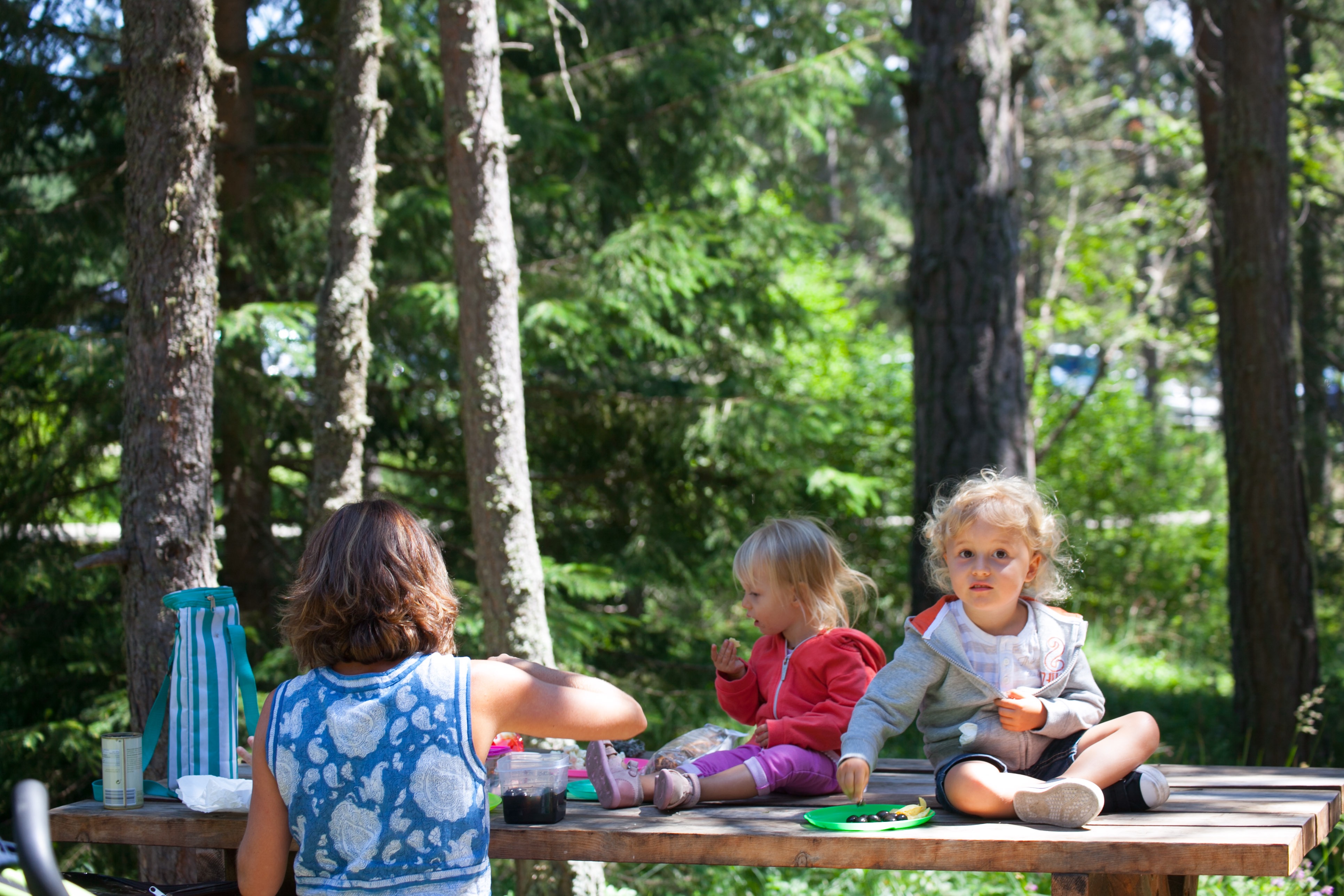 having their lunch in the mountains...