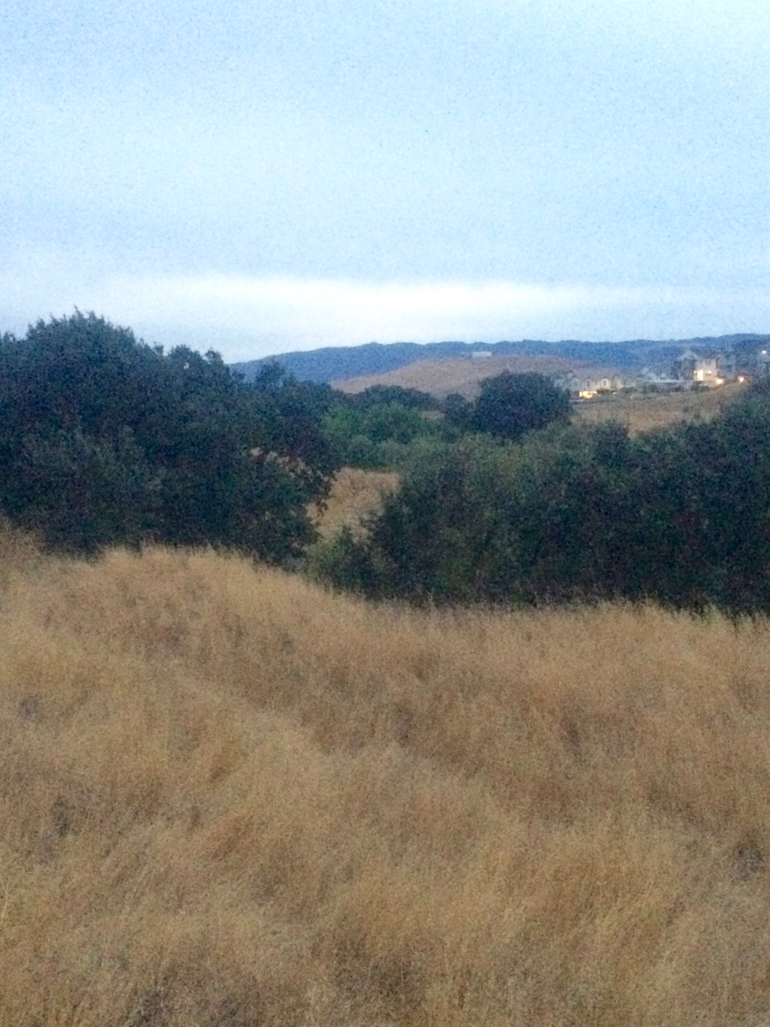 This photo shows the grassy fields with the oak trees peeking up from the ravine. Again sorry for the low light. We have been going for walks at dusk to watch the owls. There are both barn owls and great horned owls that hunt in these fields. I have been extremely frustrated that I haven't been able to document and share.