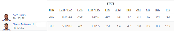 In terms of value, I 100% think Philadelphia got good value for what they gave up. I view both players as worthy of somewhere between a late first round and mid-second round pick by themselves. In looking at the teams who originally owned the picks, it's highly likely that all three picks will be towards the end of the 2nd round in the respective drafts. Now check out the stats by the players they brought back: