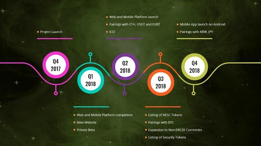 Nebula token is referred to as Nebula Exchange Star Credit "NESC" is an authorized utility token that will be utilized across the platform for transactions.