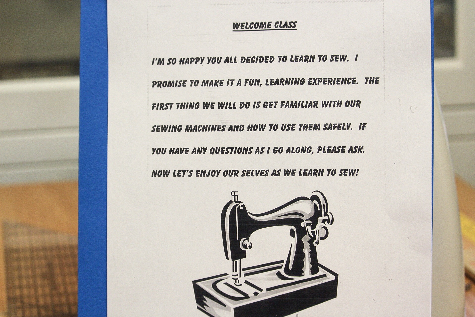 She had these letters waiting for us on each of our sewing machines (yes I’ll get to that soon, she has 5 of them) along with our own folders to keep notes and tests in (yes she plays no games lol). She wants it to feel comfortable but also as if we are really in a professional class. She wants us to work hard and be serious about learning these sewing skills.