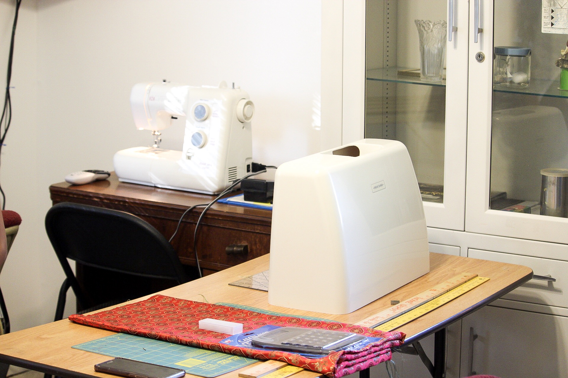It was hard to get a shot of the whole room but here you can see the work table that my mom uses to demonstrate on. We will also use it when we need to cut, measure, trace patterns etc.
