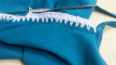 The shirt is so much better with your lace panel. It now looks like a little artwork. But how did you made it? Did you made little holes for the crochet?