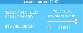 upvoted by @steemmonsters @ 2.86% * $19.17 = ?)