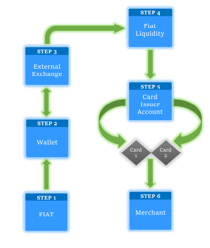 Check the diagram below to see how the card payment works starting from the wallet to any terminal used.
