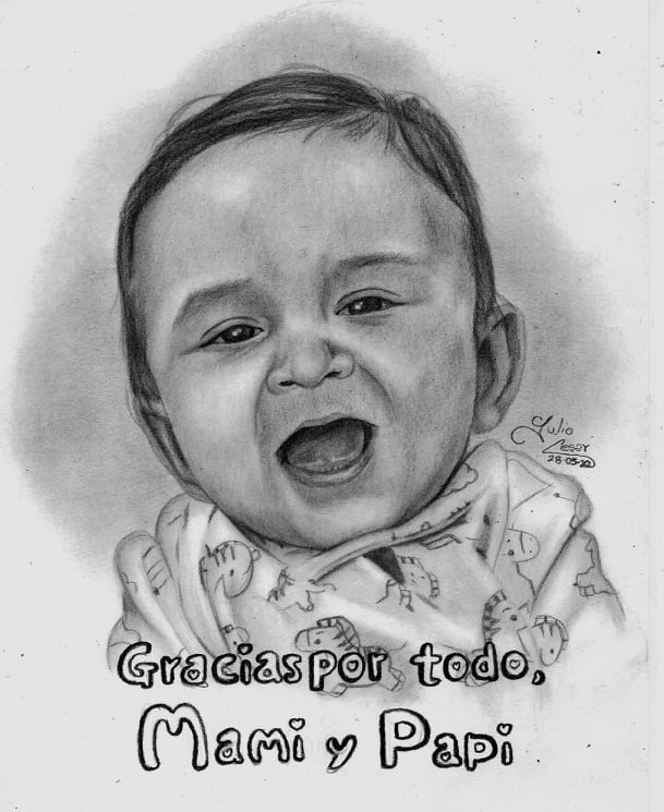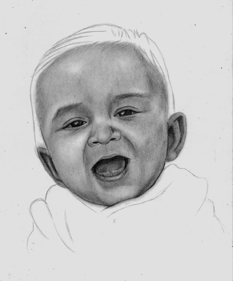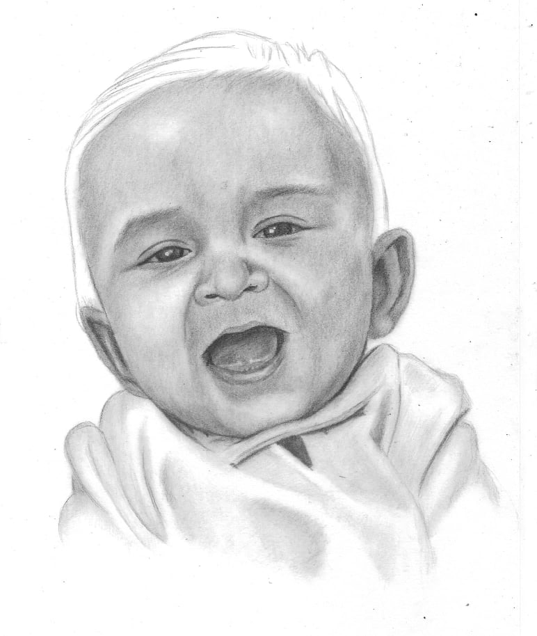 Retrato de bebé a lápiz.