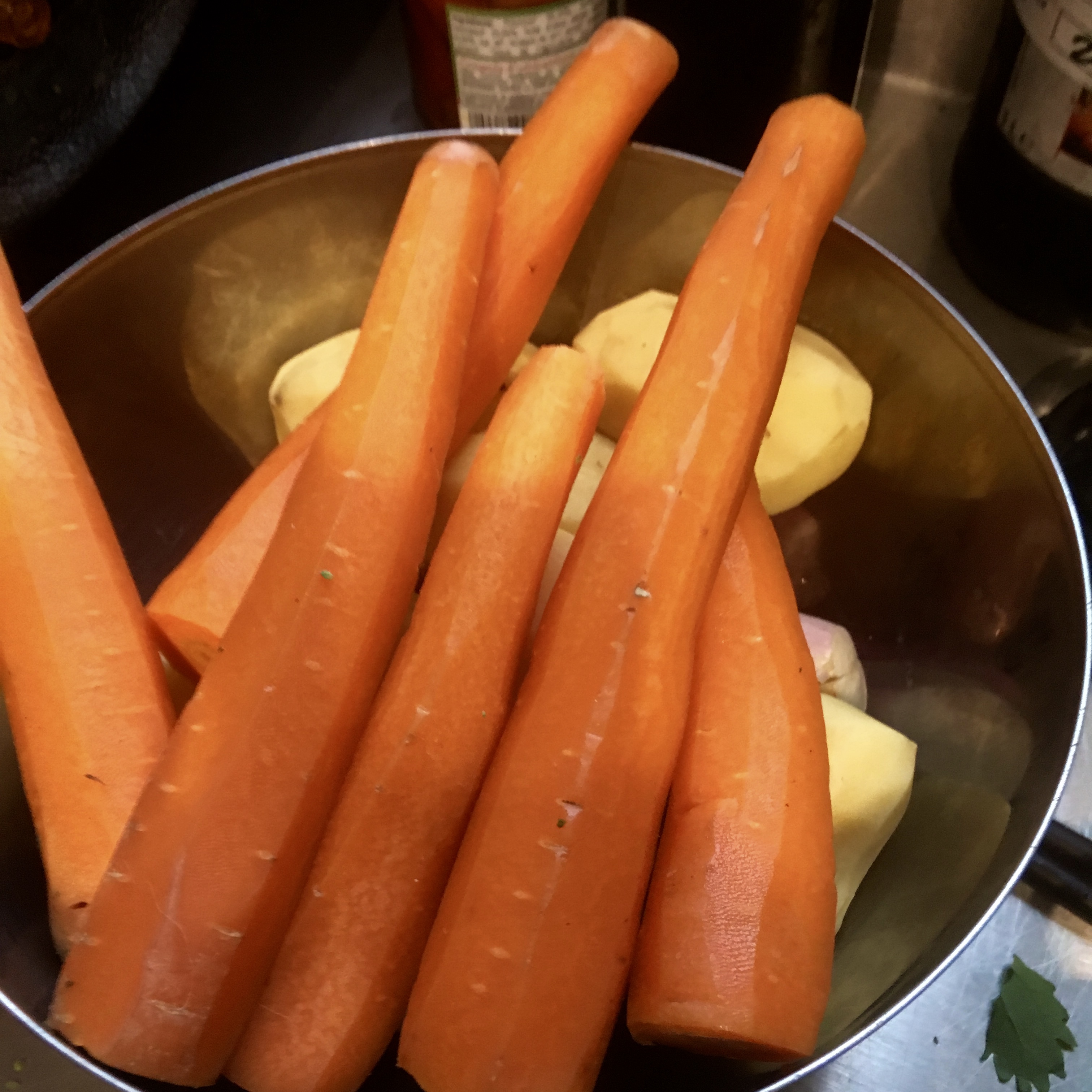 The carrots and potatoes make the base of the soup. For a "normal" size soup, I reckon 3 carrots and 5 potatoes will be good. I was making a big soup so I used about the double of that.
