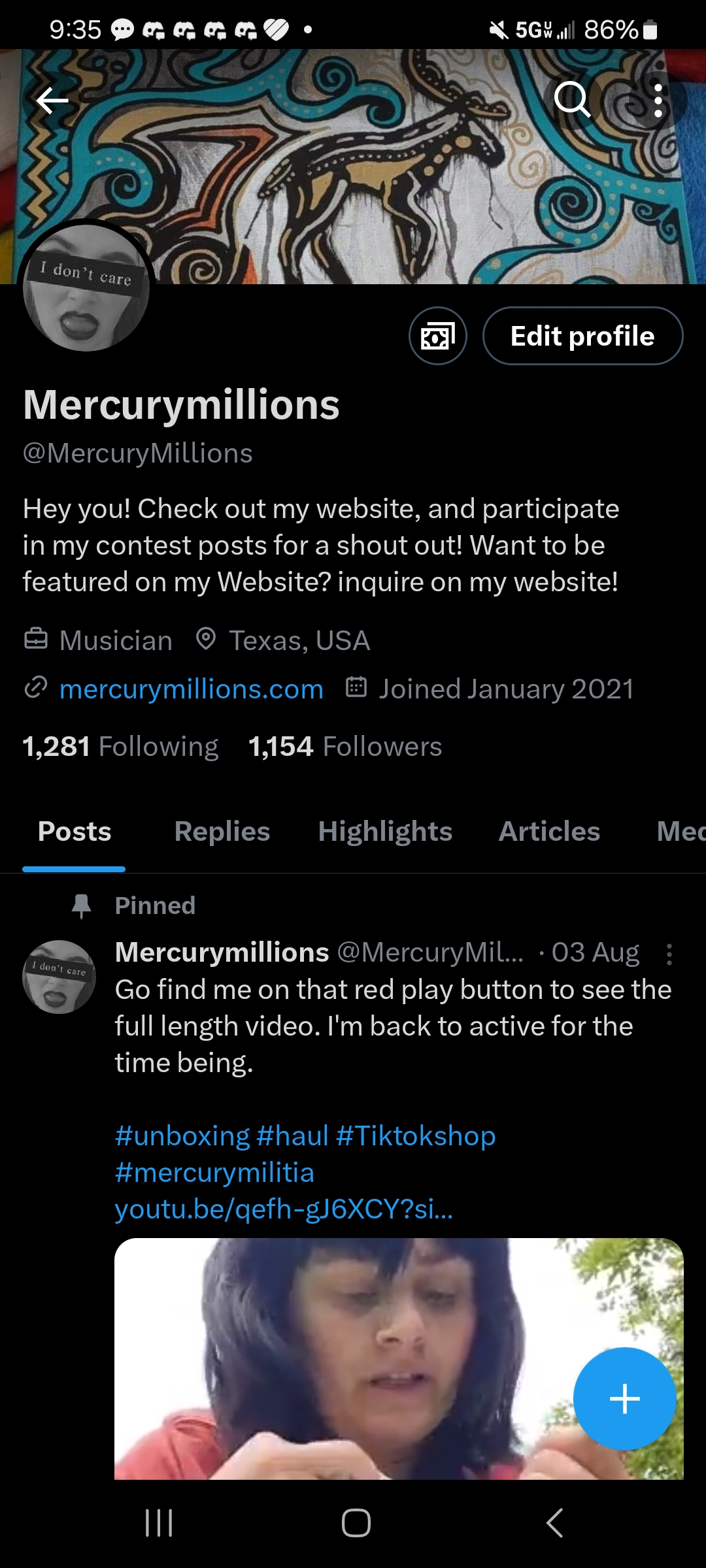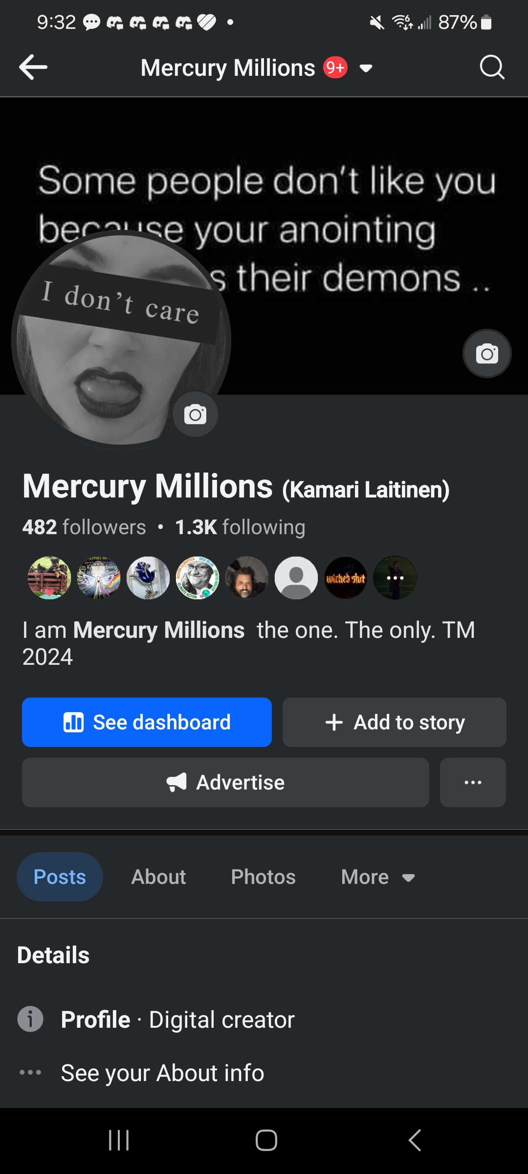 You can find my socials on MOST platforms under @MercuryMillions including Facebook where you can find me under Mercury Millions on both a page and a profile. To contact me directly, you can message my Facebook profile at: