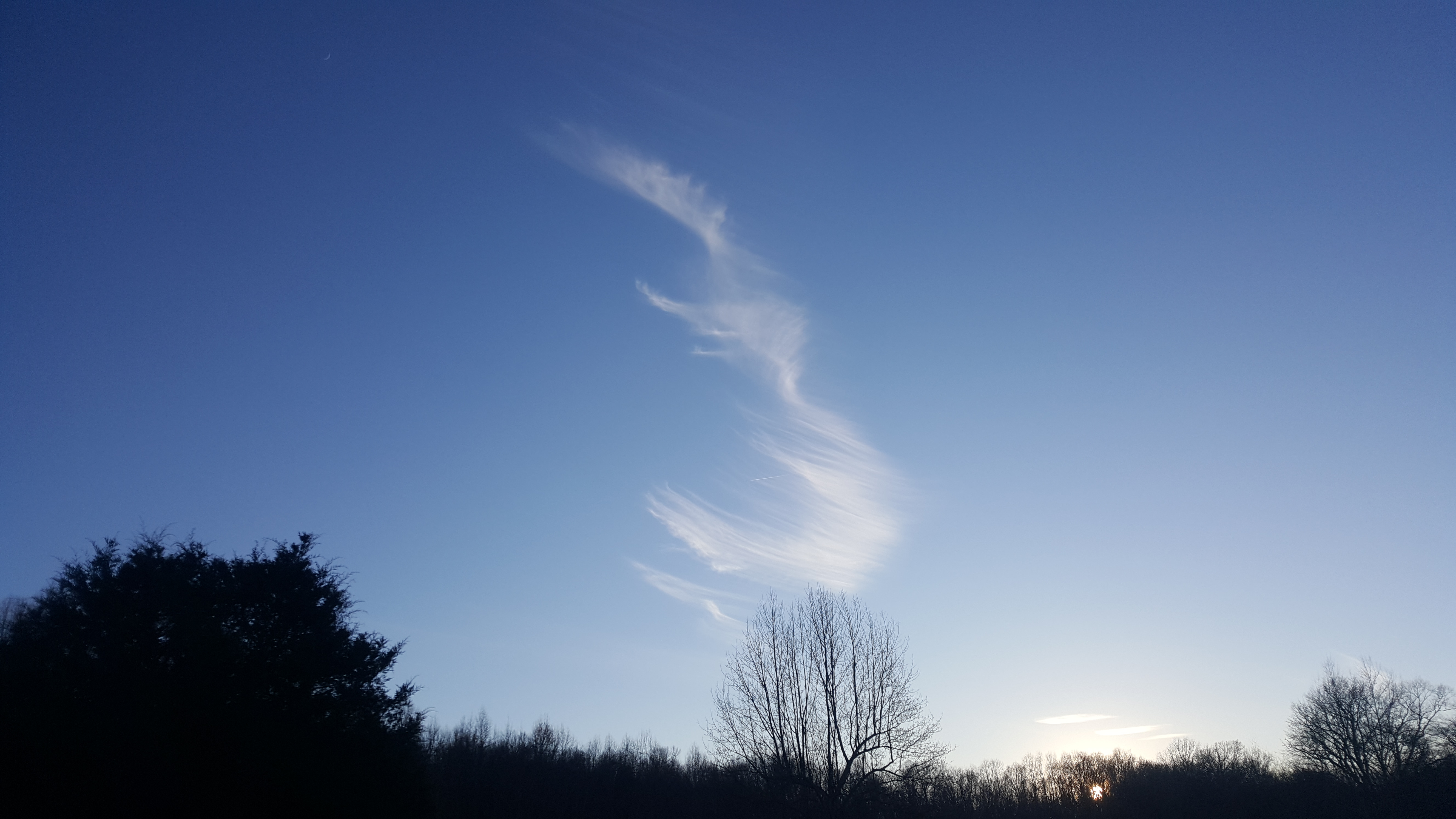 The other day after work I took my dog out to play in the back yard. After playing for a short time I happened to look up at the sky. I am a born again Christian and been having some struggles trying to live as Jesus commanded us to live. When I looked up I saw something amazing. It was a cloud formation that looked just like a wing from an angel.