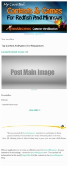 You can write 1 or 2 curation posts per week (the number will depend on how many people I can find) in which you highlight 3 to 5 contests/games. (I will provide you with a template for the curation post.)