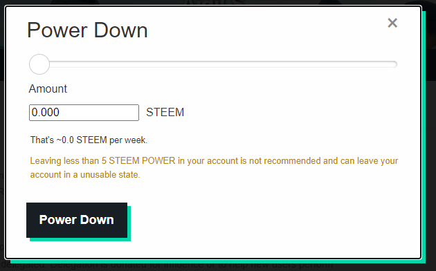 Setelah itu kalian bisa mengatur seberapa besar Power Down yang kalian inginkan dengan cara menggeser nya (maaf, saya tidak memiliki Steem Power, jadi saya tidak bisa menunjukkanya)