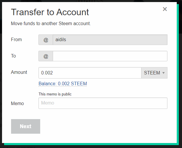 Lalu, masukkan tujuan pengiriman (Steem Account) yang kalian tuju, masukkan juga jumlah STEEM yang ingin kalian kirimkan, Memo ini bersifat opsional, kalian bisa mengisinya atau tidak